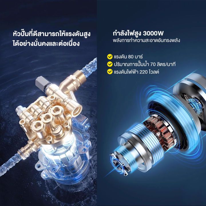 SOARFLY 5800W เครื่องฉีดน้ำแรงดันสูง 500บาร์ เครื่องฉีดน้ำแรงดันสูง มอเตอร์เหนี่ยวนำดูดน้ำได้ด้วยตัวเอง ช่วงสูงสุด 8-12M