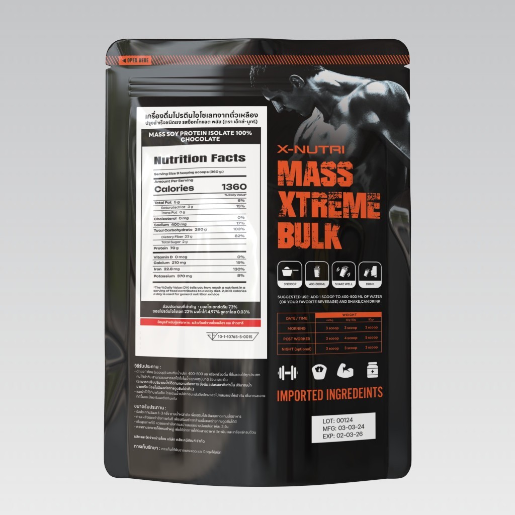 (ส่งด่วน) XNU Mass Soy Protein Gainer 900g รสช็อกโกแลต (3ซอง) แมสซอยโปรตีน900กรัม (3ซอง)