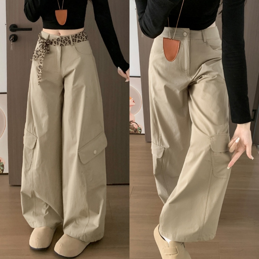 5สี กางเกงขายาว กางเกงคาร์โก้ มินิมิล ออกแบบสวย สไตล์วินเทจ#1354