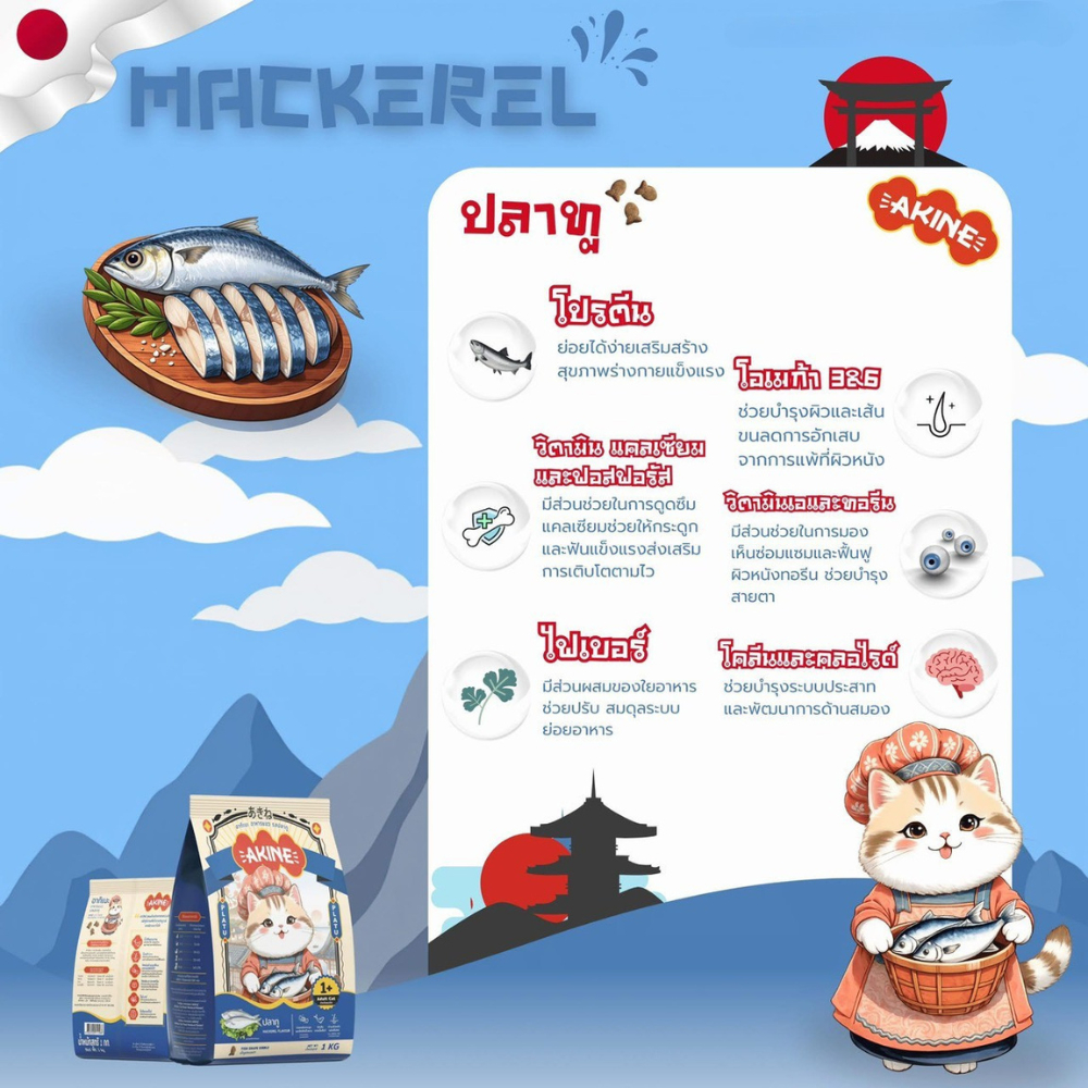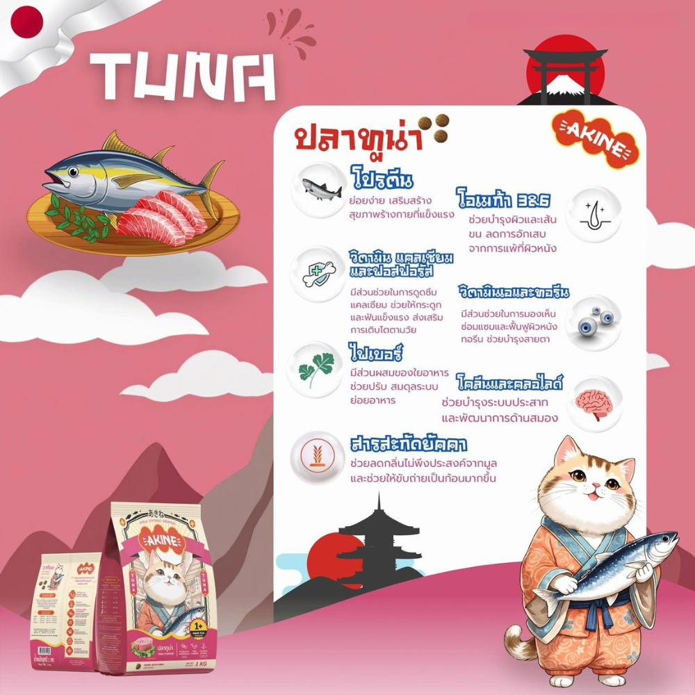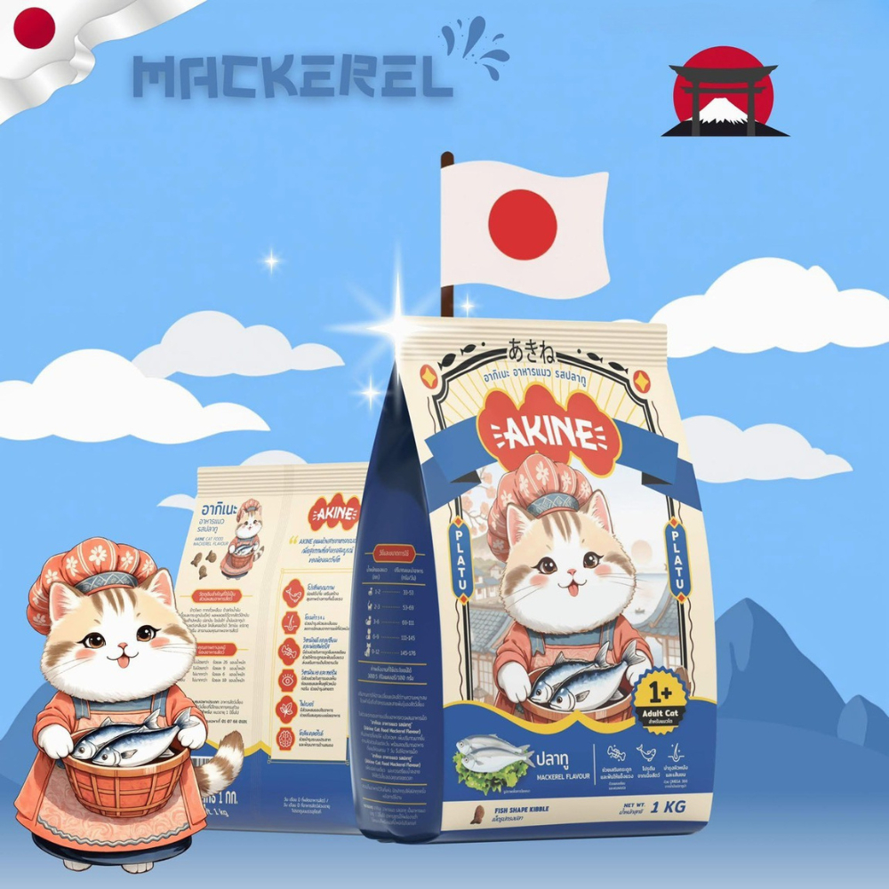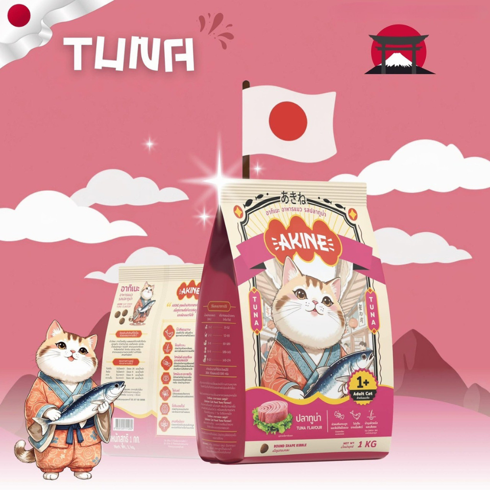 [ ถุง 1kg ] อาหารแมว AKINE อาหารเม็ดแมว อากิเนะ สูตรเอาใจแมวกินยาก รสปลาทู รสปลาทูน่า คัดเฉพาะวัตถุดิบคุณภาพดี