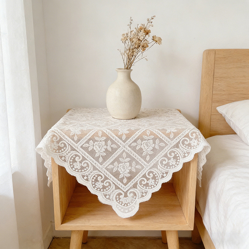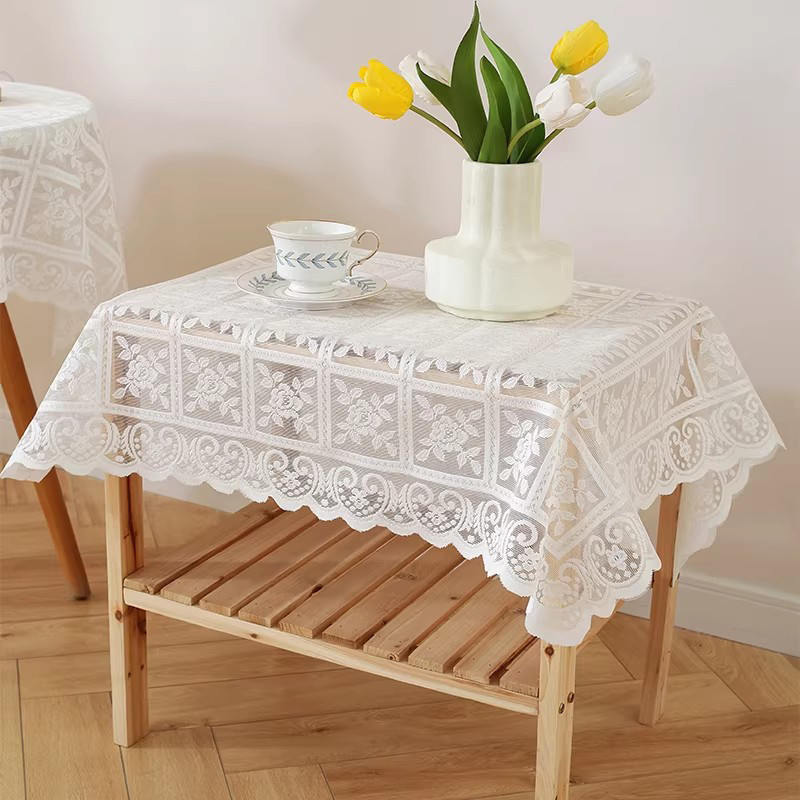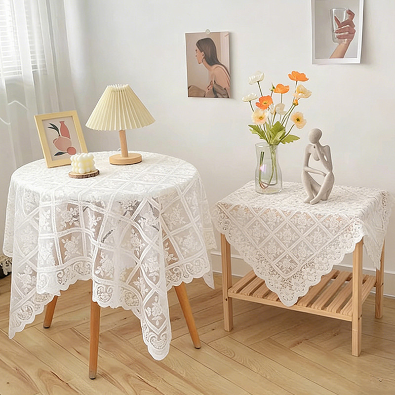ผ้าปูโต๊ะสีขาวสไตล์นอร์ดิกลูกไม้ปักออกแบบป้องกันฝุ่นผ้าคลุมโต๊ะตกแต่งบ้าน