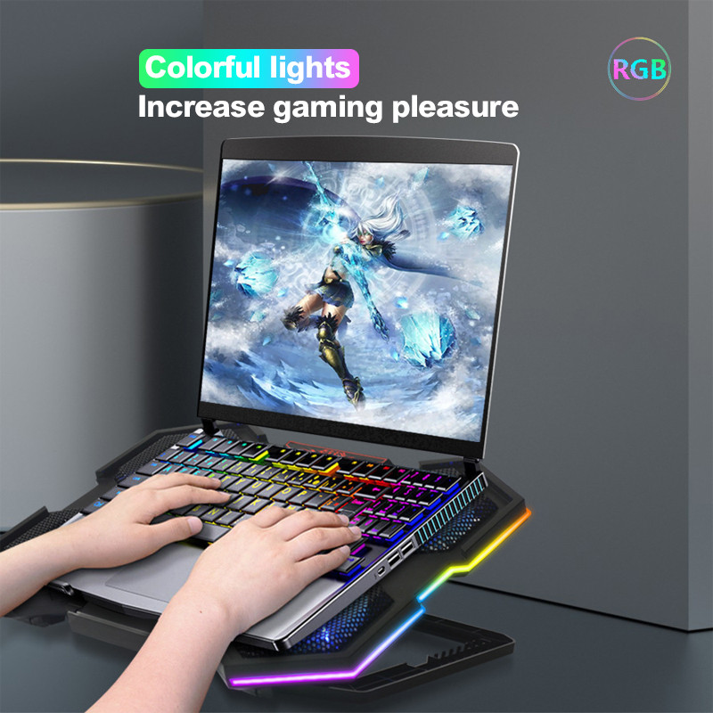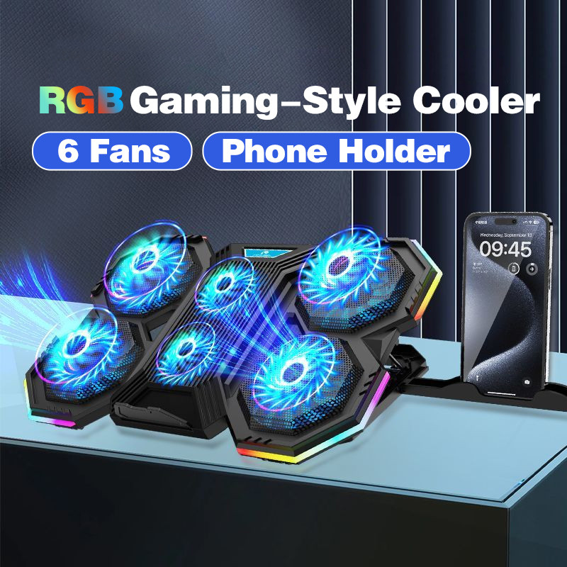 พัดลมรองโน๊ตบุ๊ค Gaming Cooler Pad พัดลมระบายความร้อนโน๊ตบุ๊ค 6 ใบพัด ระบายความร้อนโน๊ตบุ๊ค With Phone Expansion Holder
