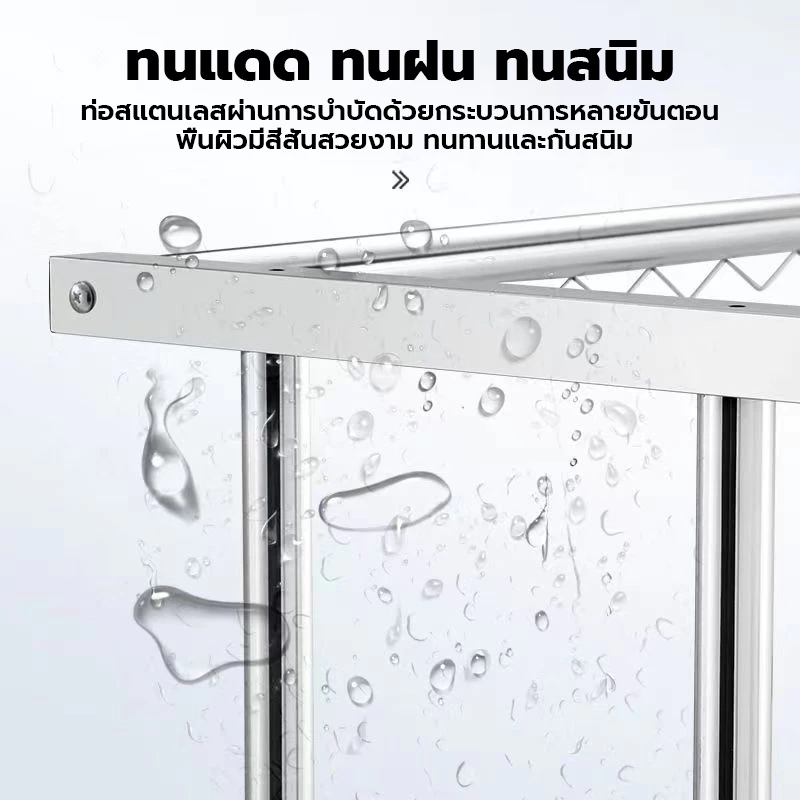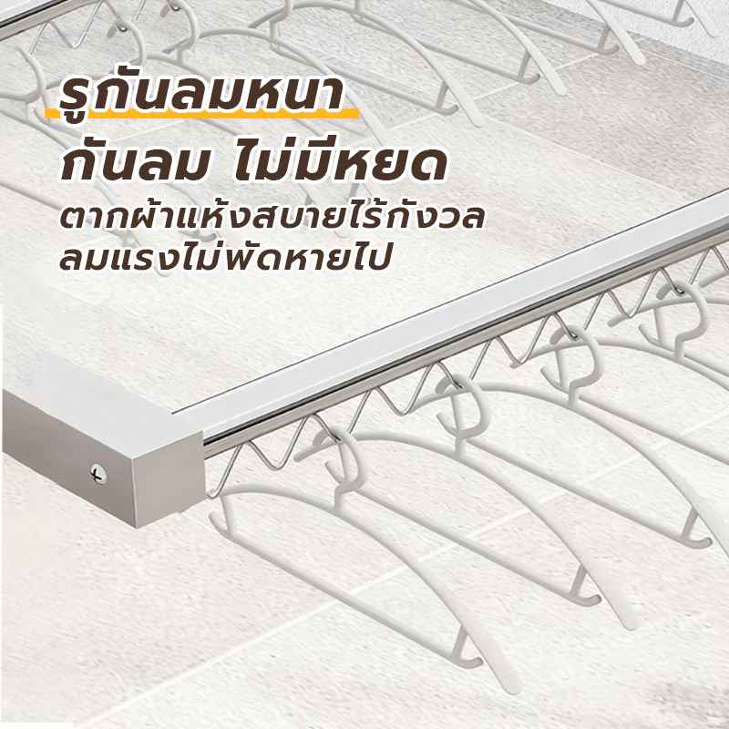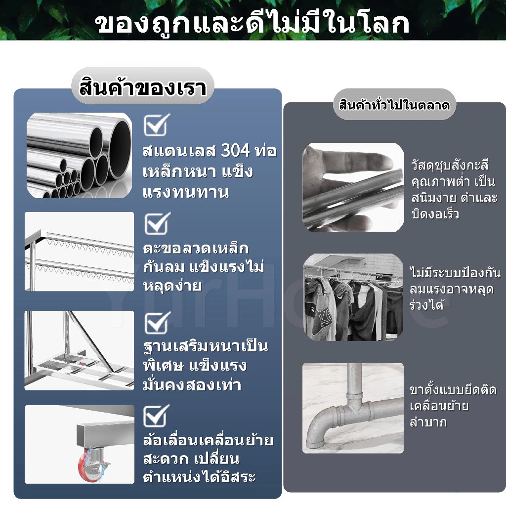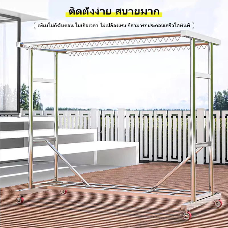 สแตนเลสหนาขึ้น ราวตากผ้า ราวตากผ้าสแตนเลส สแตนเลส304 มีล้อ ราวแขวนผ้าบาร์คู่ ทนแดด ทนฝน รับน้ำหนักได้ 150กก