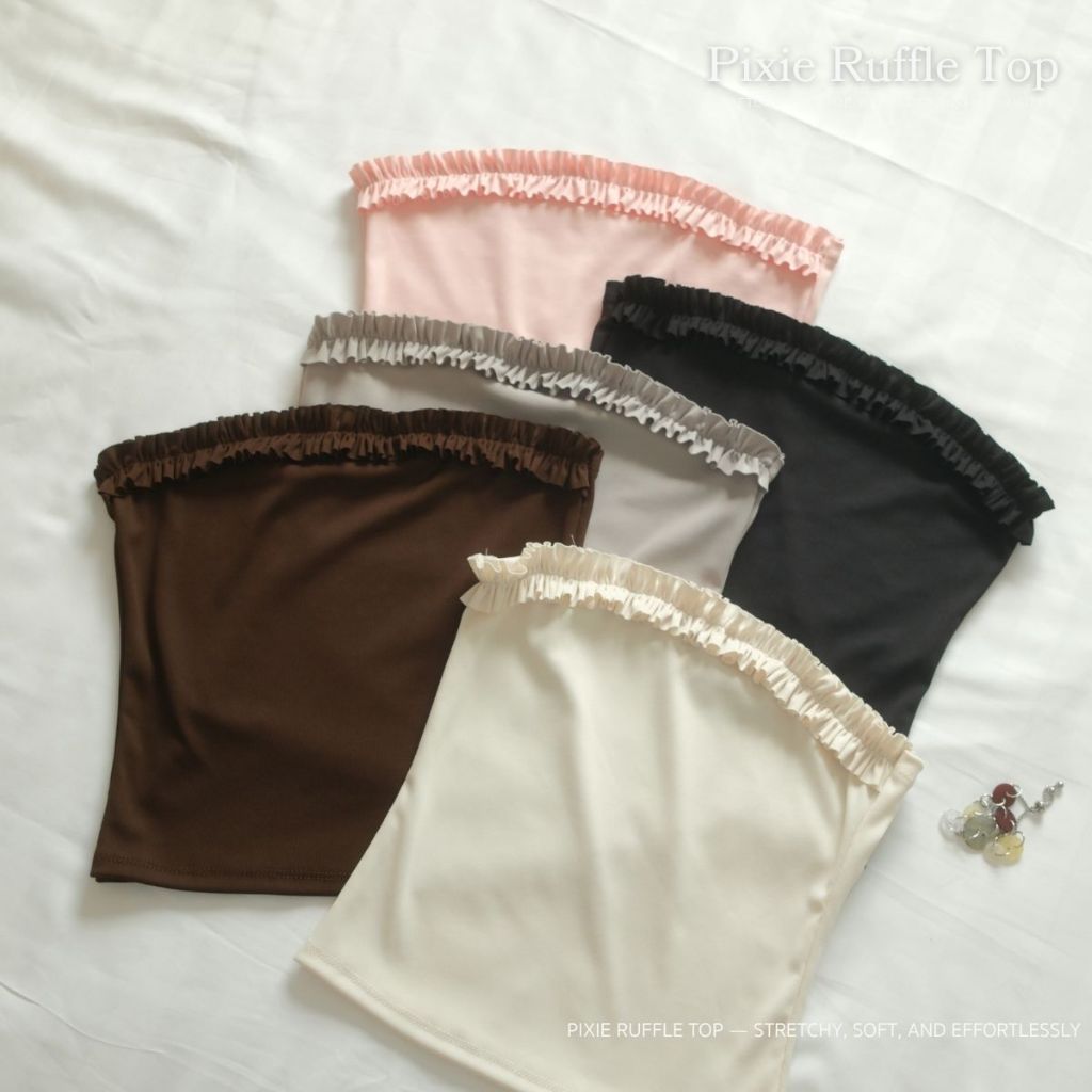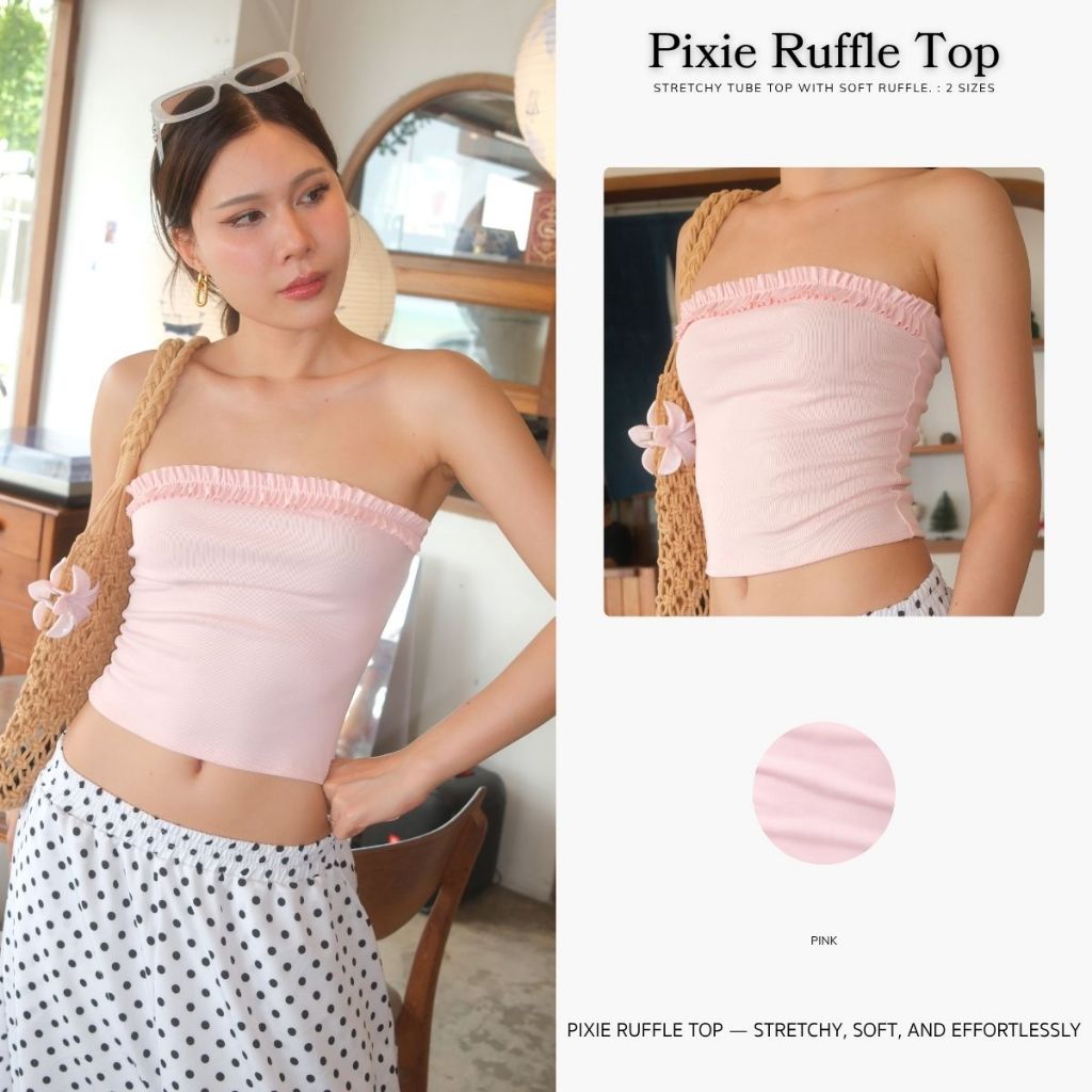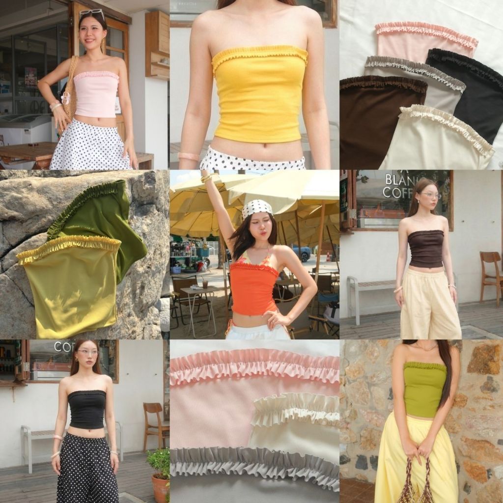 Pixie Ruffle Top | เสื้อเกาะอกระบาย ยืดตามตัว แมทช์ง่าย ซัมเมอร์ คาเฟ่ ทะเล ColiCotton ผ้านุ่ม ใส่สบาย |MURF.BKK| T202
