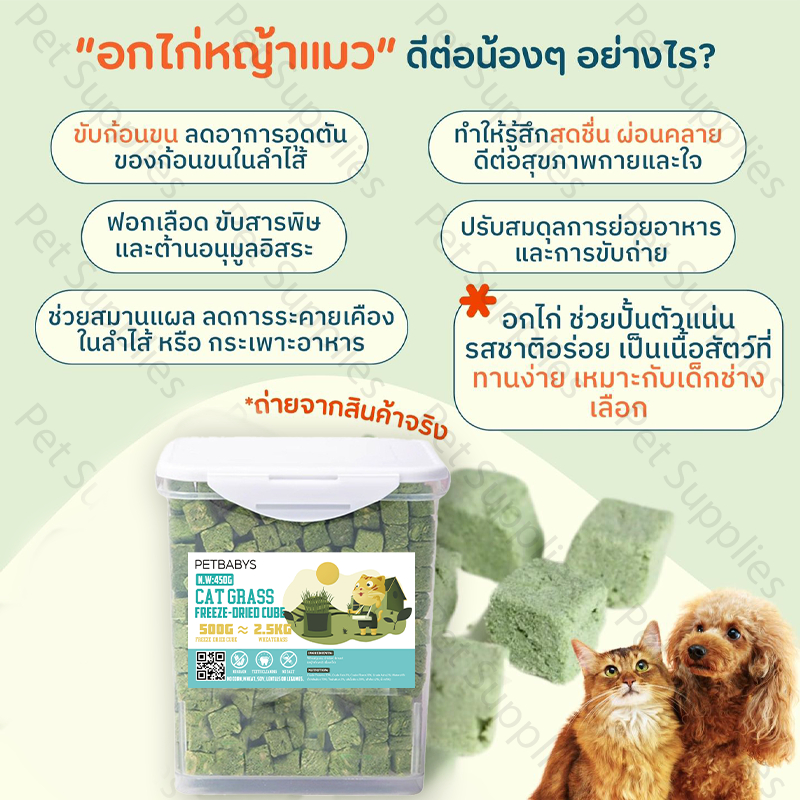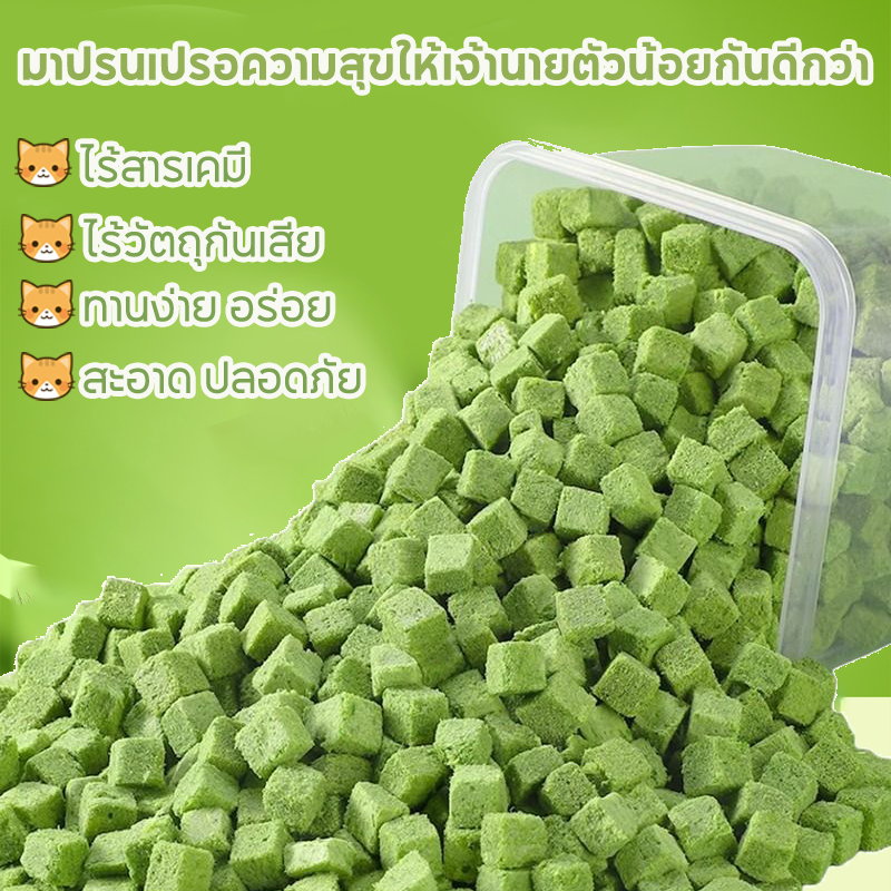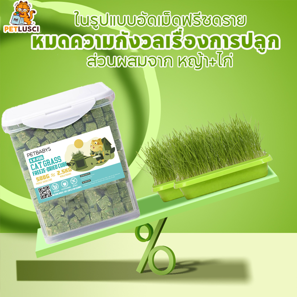 PETLUSCI หญ้าแมวฟรีซดราย ขนมแมว 640กรัม ผลิตจากต้นอ่อนข้าวสาลี ลดการสำลักขน ผสมอกไก่แท้ โปรตีนสูง
