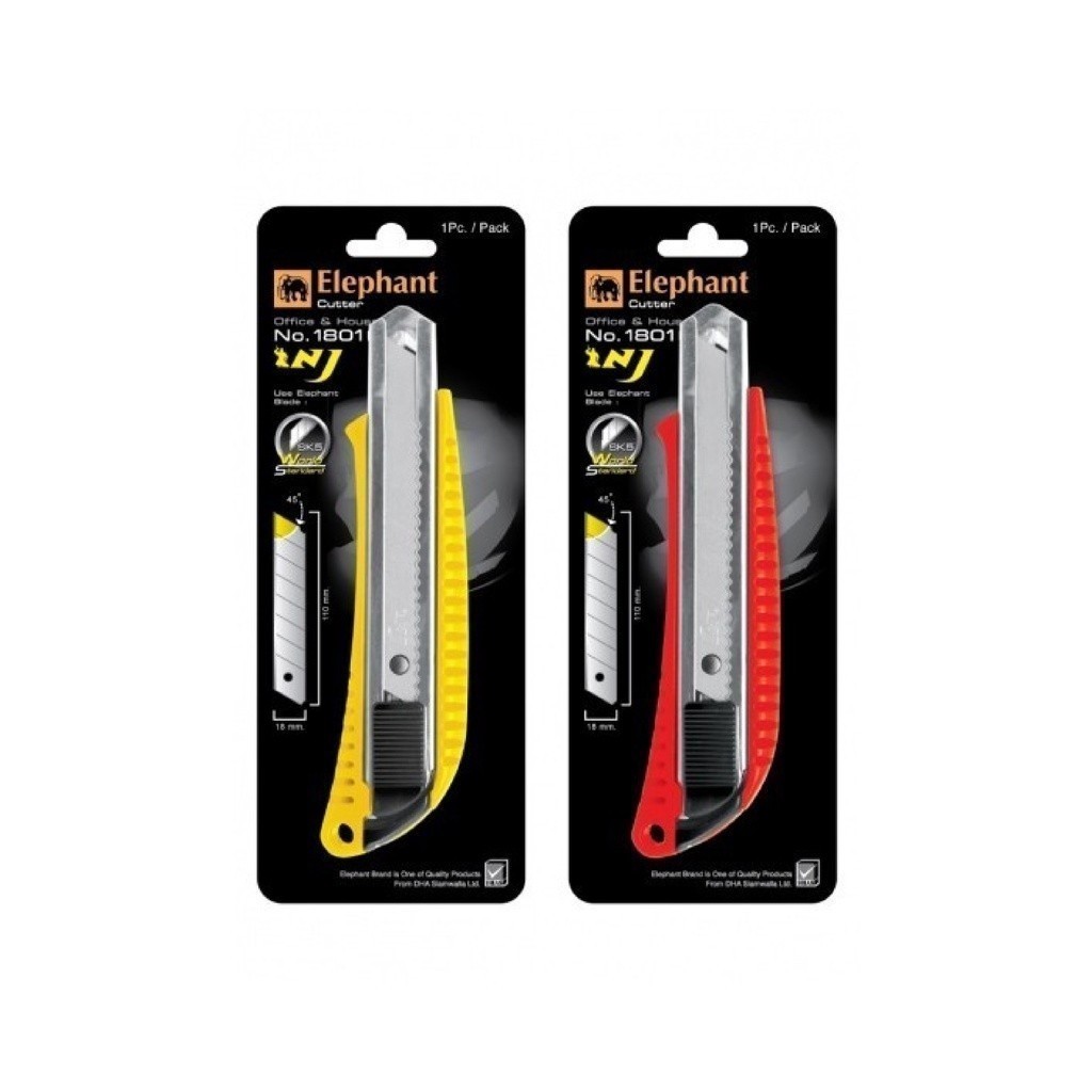 Elephant คัตเตอร์ มีดคัตเตอร์ Economy รุ่น 1801 18 มม. 45° ใบมีด SK5 คละสี จำนวน 1 อัน