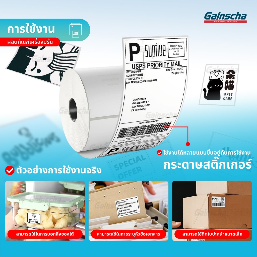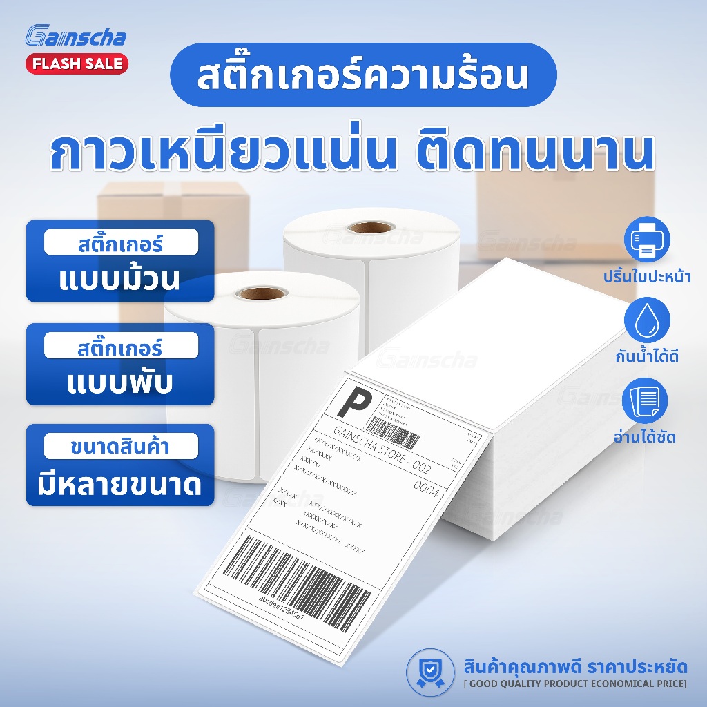 [ขายดีที่สุด] กระดาษความร้อนสติ๊กเกอร์ 100x150 500แผ่น label sticker กระดาษปริ้นบาร์โค้ด ไม่ใช้หมึก