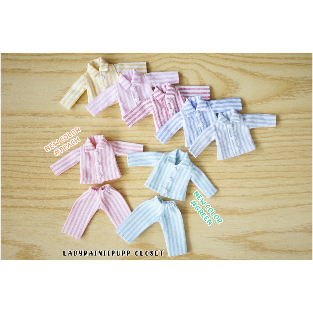 ชุดนอนลายทาง สีอ่อน | ชุดสเกล 1:12 | OBITSU 11 , TozDoll , YMY , PICCODO , DDF