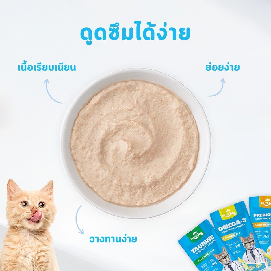 MRVET แมวเลียบำรุงสุขภาพ ดูแลลระบบย่อย บำรุงขนและผิวหนัง บำรุงสายตา สูตรโภชนาการสูง 15g