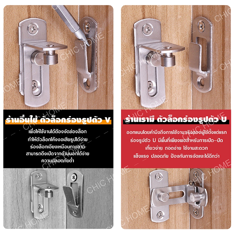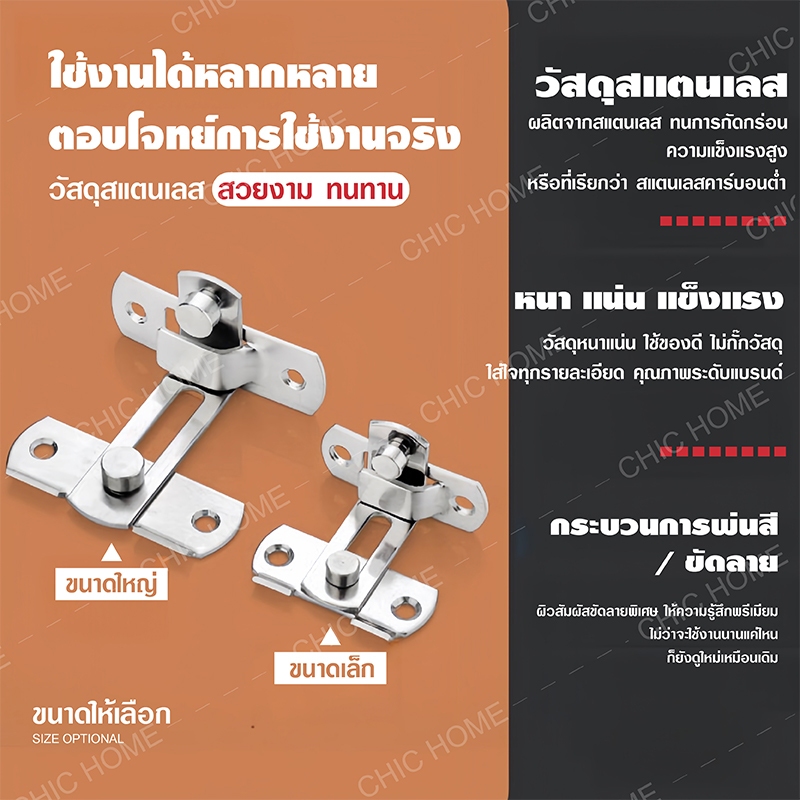 ล็อคประตูสแตนเลส ตัวล็อคประตู 90 องศา/180 สลักกลอนฉาก สลักกลอนบานเลื่อน แถมสกรูและกาว สำหรับประตูและหน้าต่าง