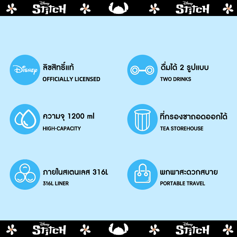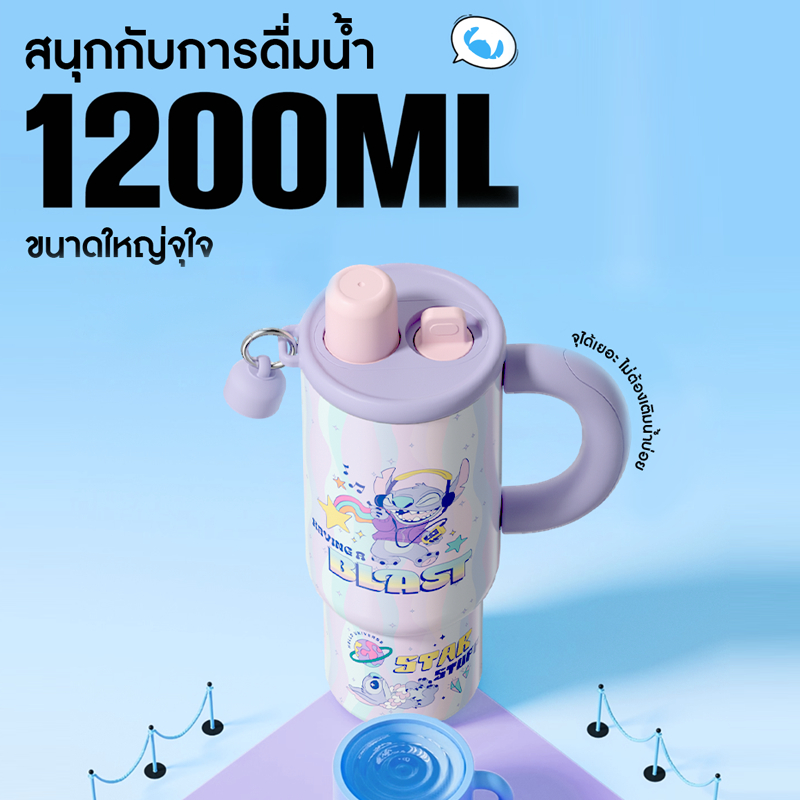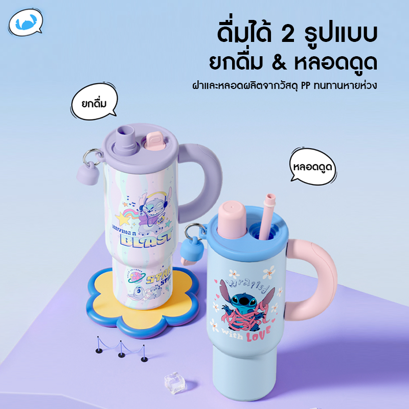 Disney แก้วน้ำหลอดความจุใหญ่ซีรีส์ Stitch แก้วเก็บความร้อน แก้วเก็บน้ำแข็ง ทำจากสแตนเลส 316 1200ml