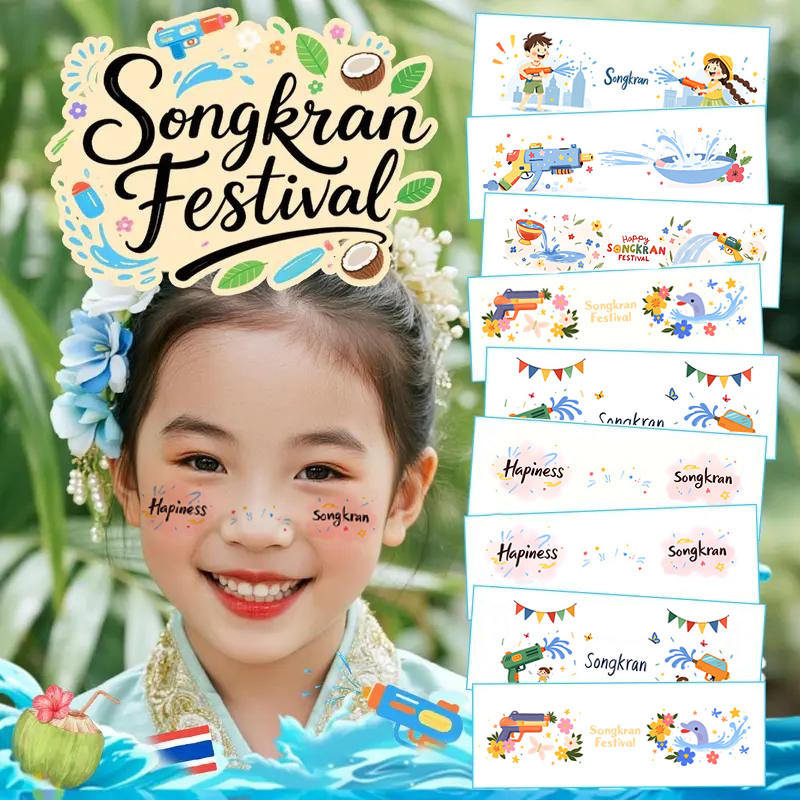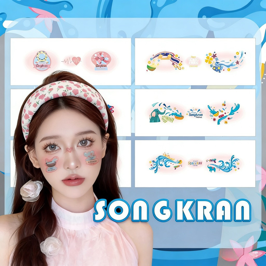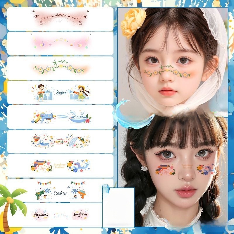 สติกเกอร์กันน้ําสำหรับใบหน้า และอุปกรณ์เสริมสงกรานต์สำหรับผู้หญิง
