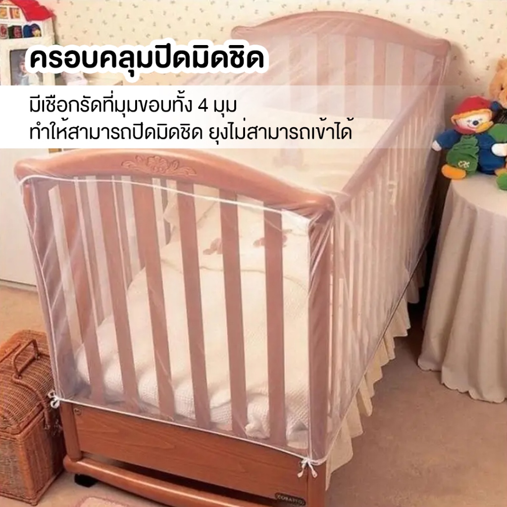 Bestbornbaby มุ้งครอบเตียงเด็ก กันยุงและแมลง สำหรับเปลเด็กทารกหรือเตียง มีเชือกผูก4มุม NETBED