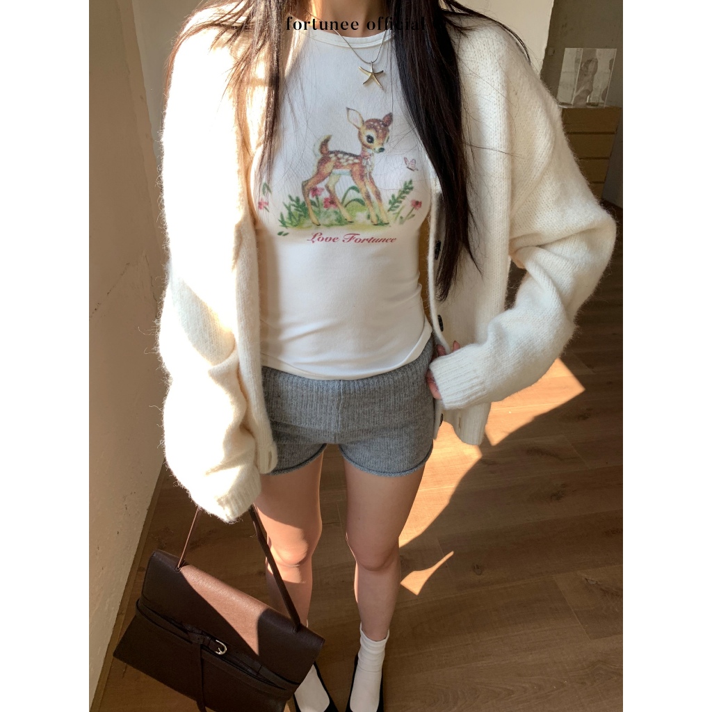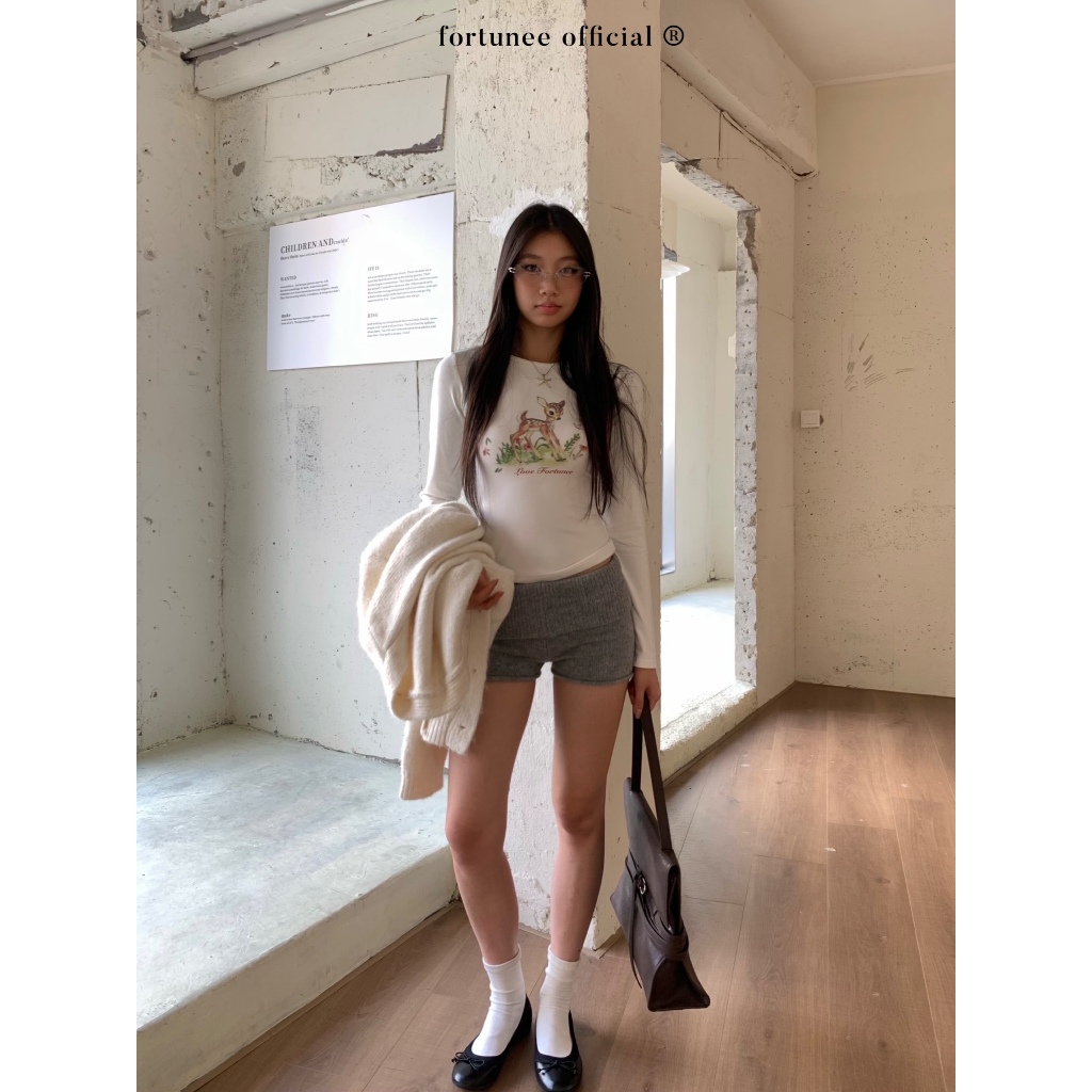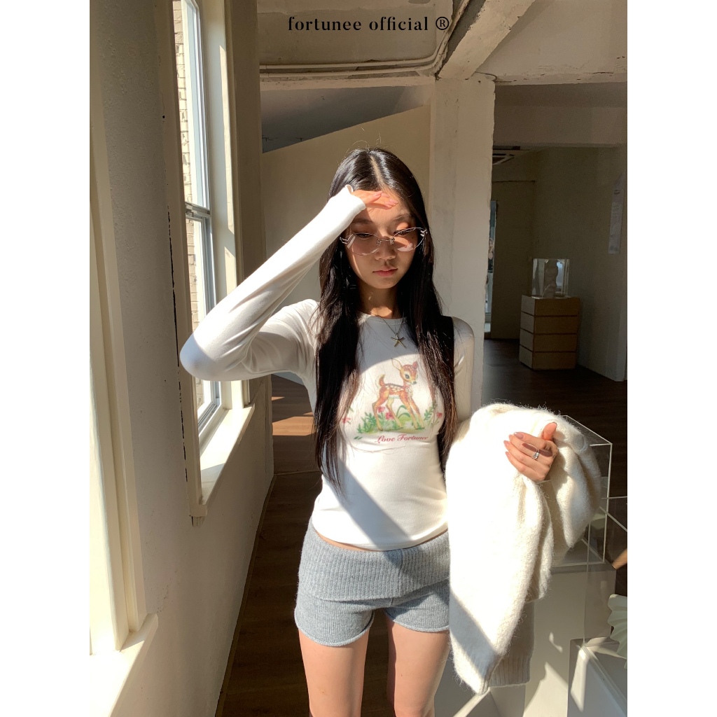 ❣Fortunee ❣เสื้อยืดแขนยาวพิมพ์น้องกวาง รุ่นใหม่ ทรงเข้ารูป ไหล่ตรง เหมาะใส่เป็นเสื้อในหรือตัวเดียว