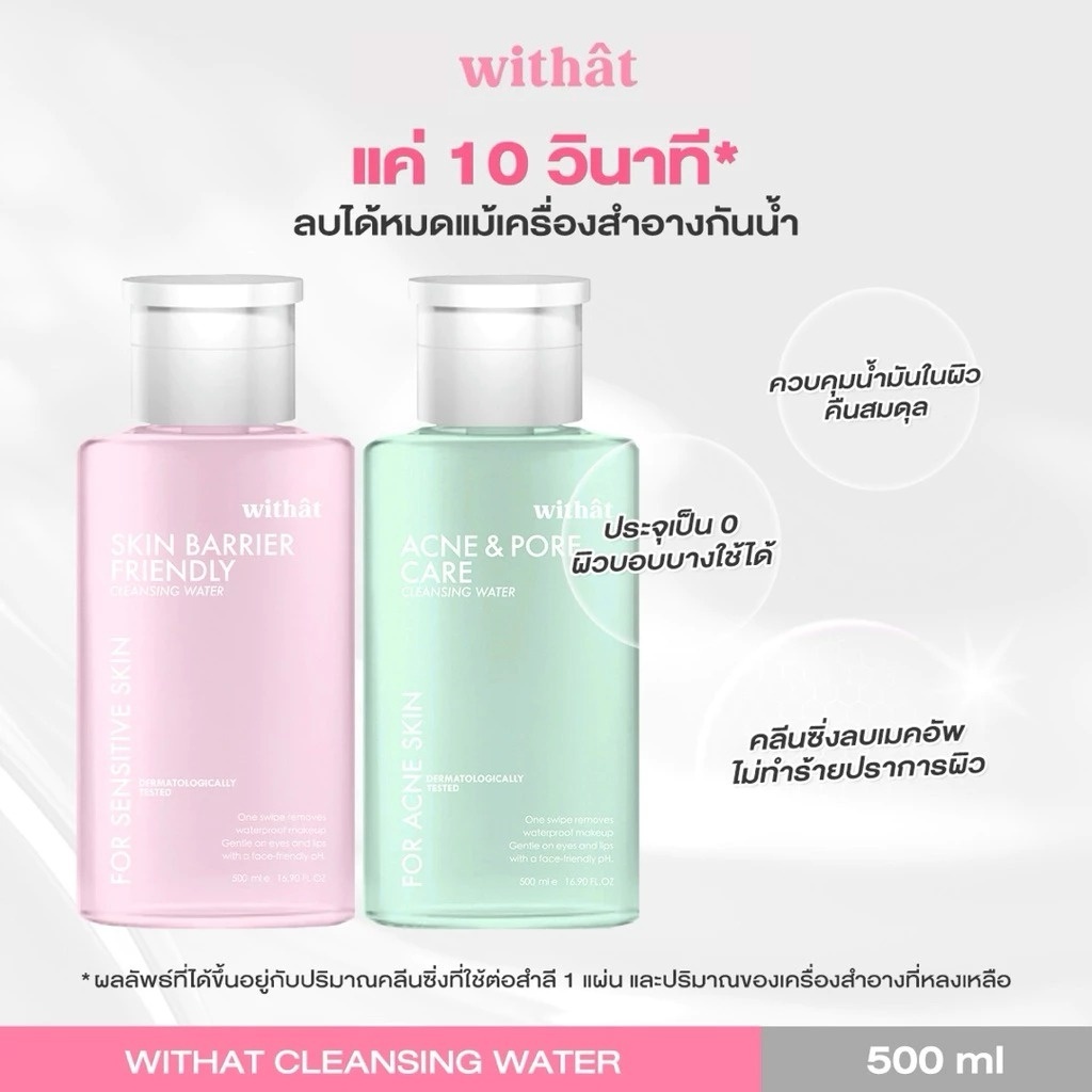 ถูก/แท้/มีไลฟ์ เช็ดเครื่องสำอาง Withat Cleansing Water วิทแทท คลีนซิ่ง ล้างเครื่องสำอาง ล้างเมคอัพ ทำความสะอาดหน้า