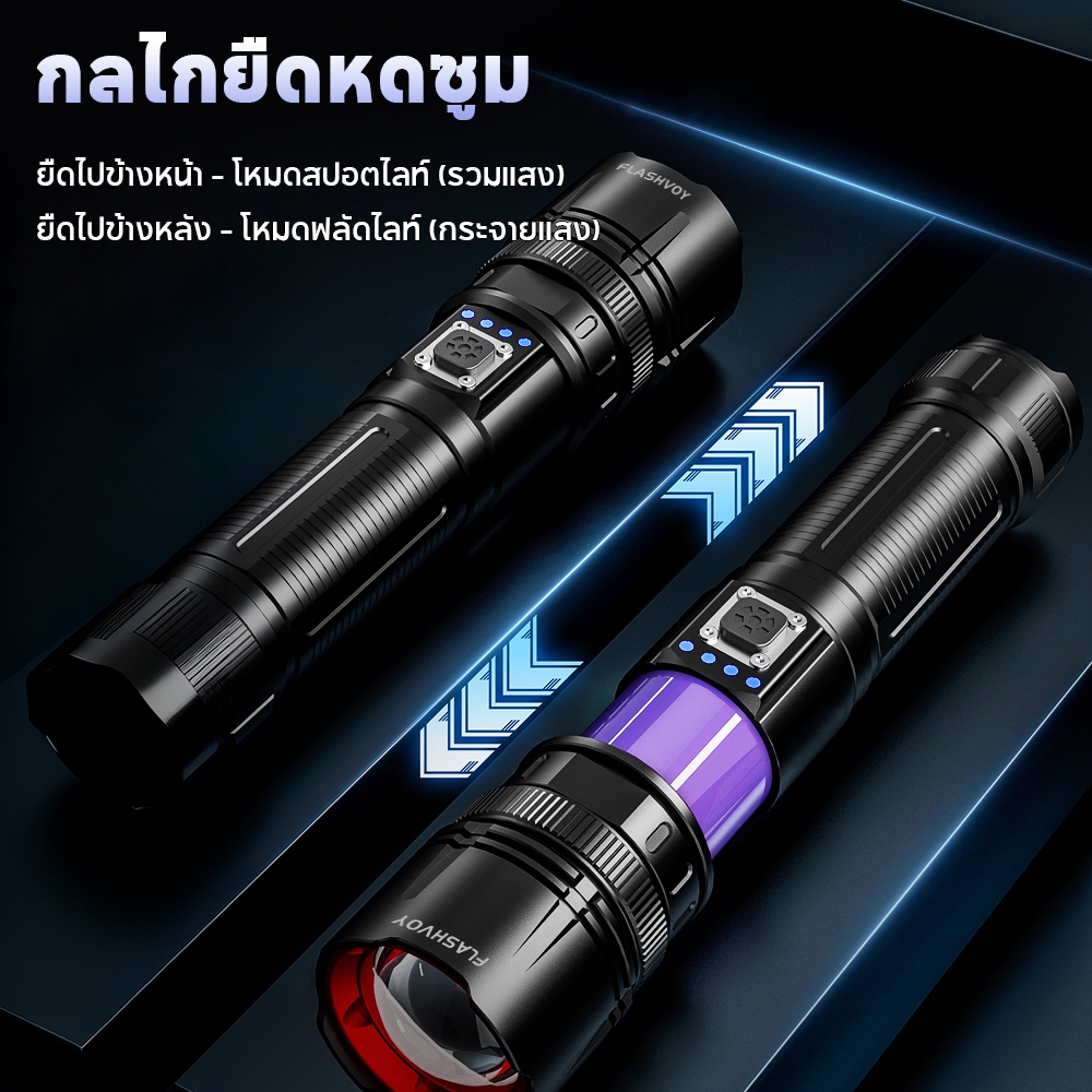FLASHVOY ไฟฉาย LED ไฟฉายพกพา แบตอึด 48 ชม. แสดงแบต 4 ระดับ ชาร์จเร็ว Type-C ไฟฉายแรงสูง BF04