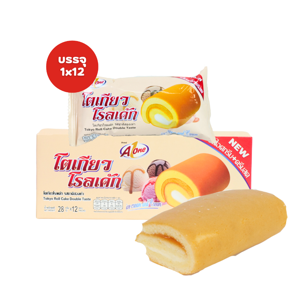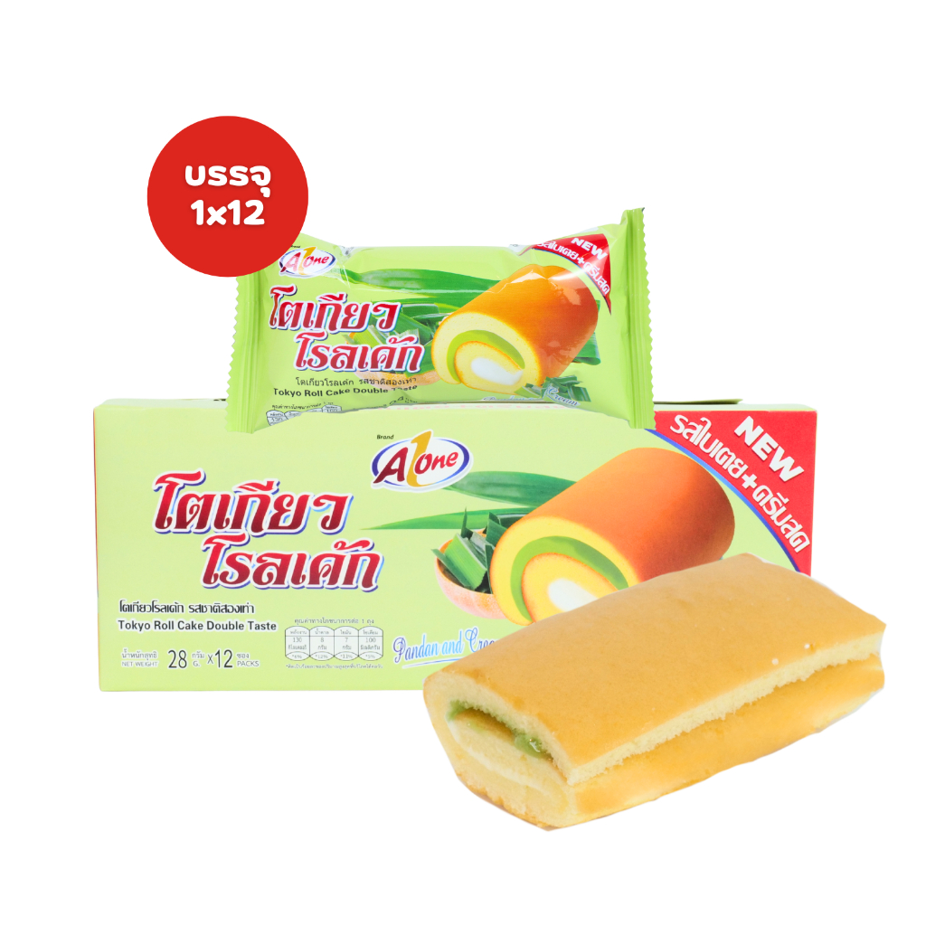 Aone โตเกียว โรลเค้ก 4 รส (ใบเตย ช็อกโกแลต ส้ม ไอศกรีม ) (4 กล่อง 48 ชิ้น)