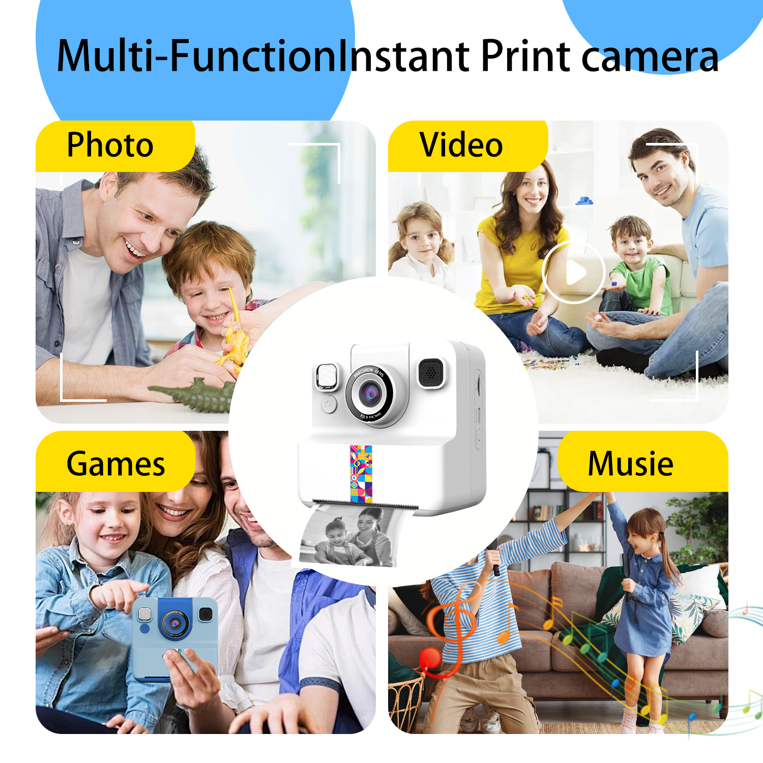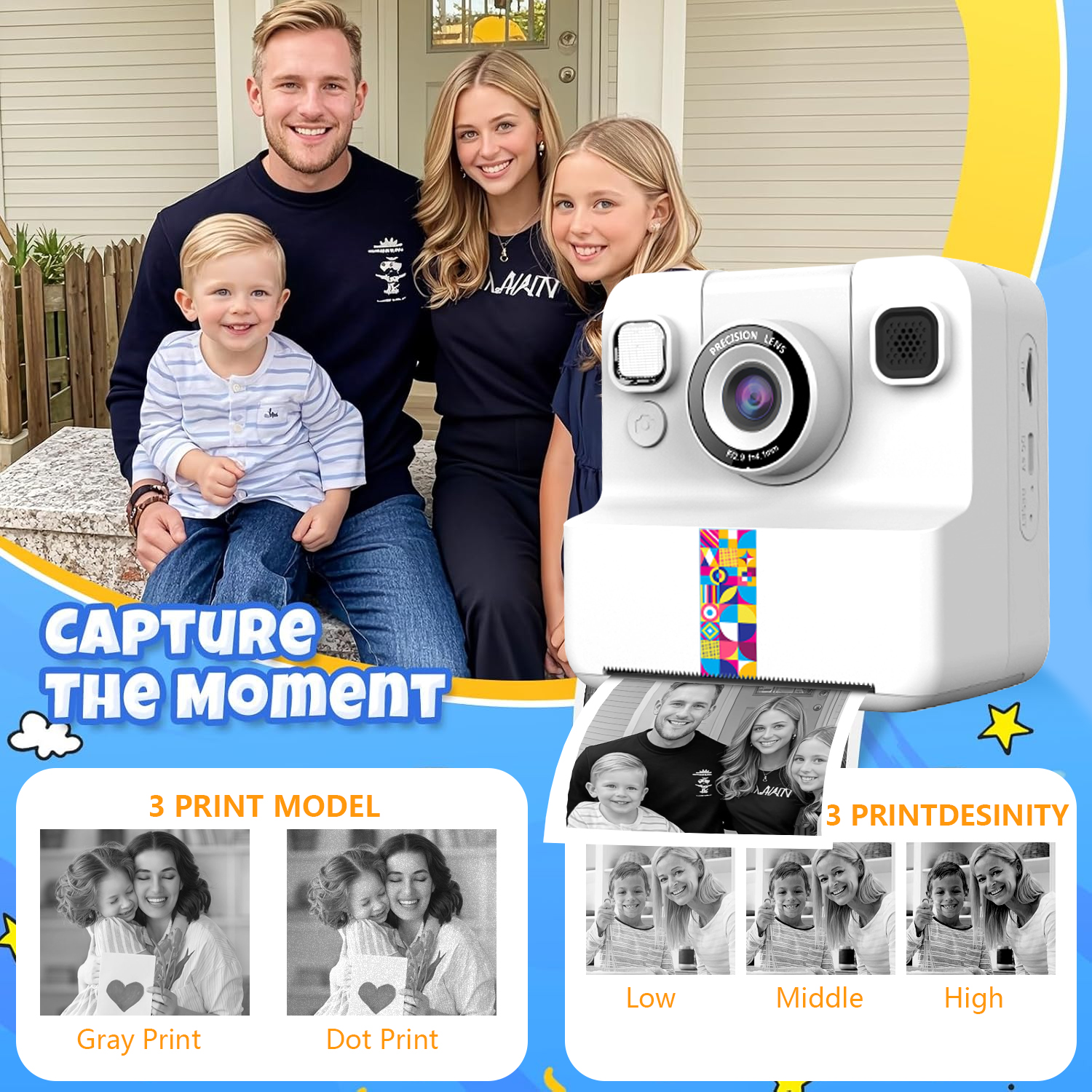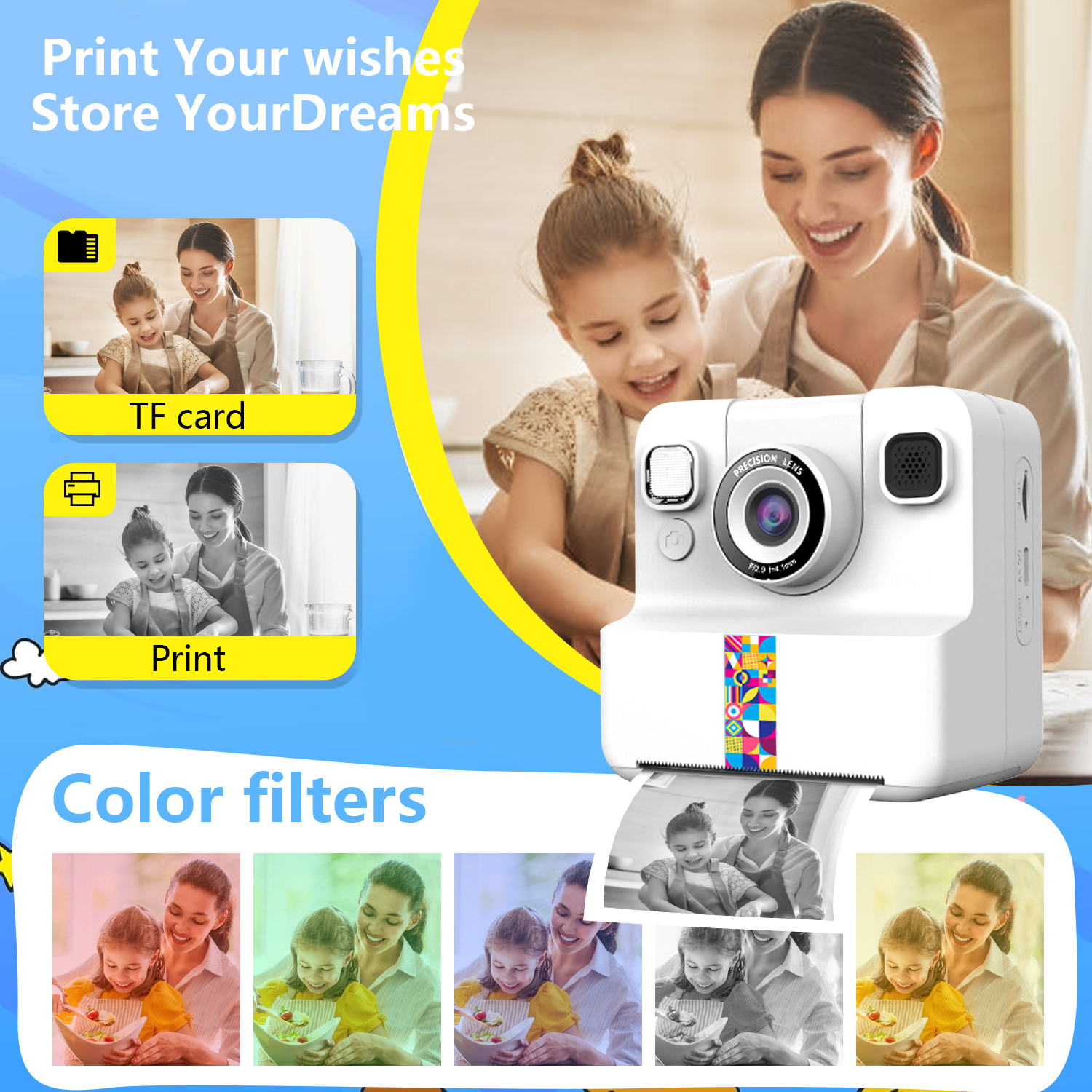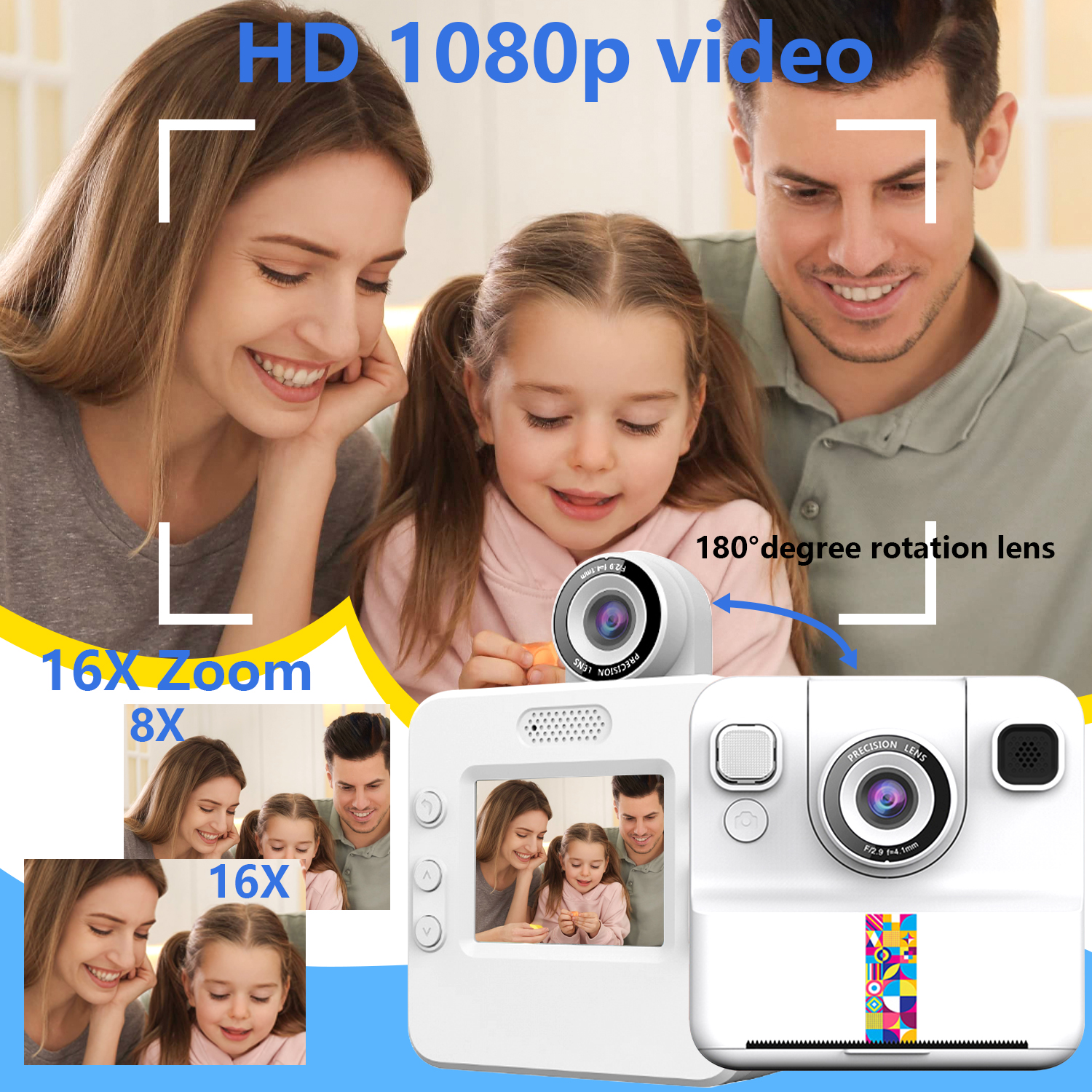 กล้องพิมพ์ทันทีสําหรับเด็กพร้อมกระจกหมุนได้ 2.4 นิ้ว LCD 1080P HD และดนตรีคริสต์มาส