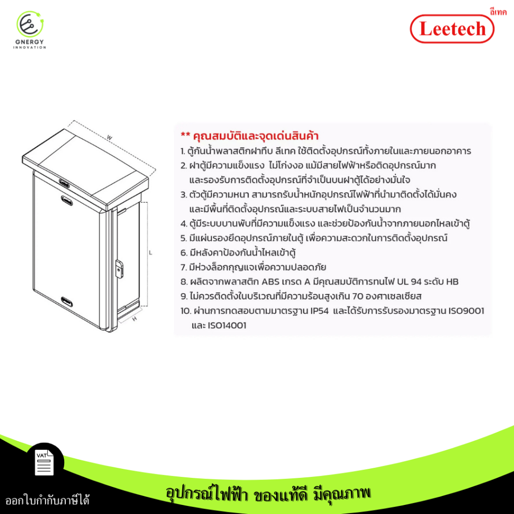 (ฝาทึบ)Leetech ตู้พลาสติกกันน้ำ พลาสติก ABS ขาว/เทา/ดำ IP54 แบบมีหลังคา ป้องกันน้ำไหล