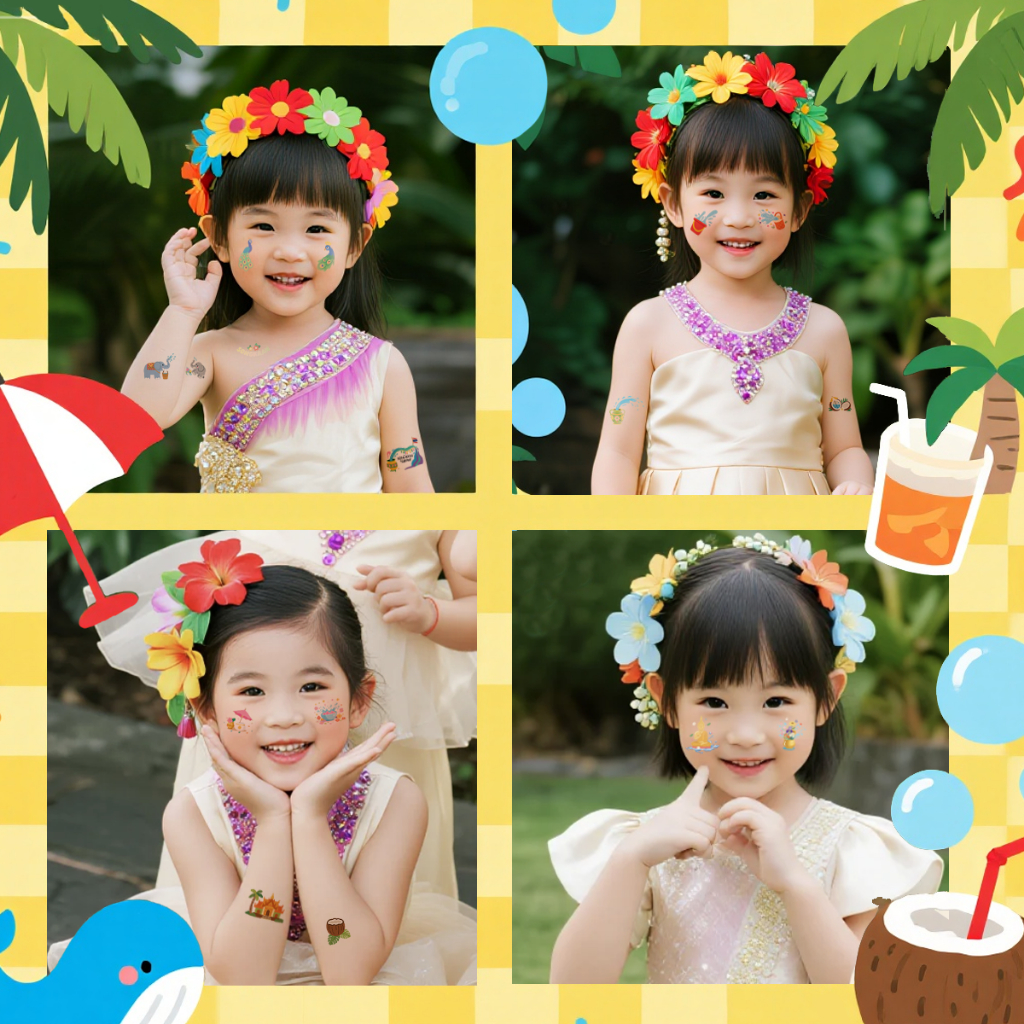 【ส่งจากไทย】สติกเกอร์รอยสักสงกรานต์ กันน้ำ ลายน่ารัก ไม่เจ็บผิว เด็กผู้ใหญ่ใช้ได้ สติกเกอร์แต่งหน้าสงกรานต์ -628
