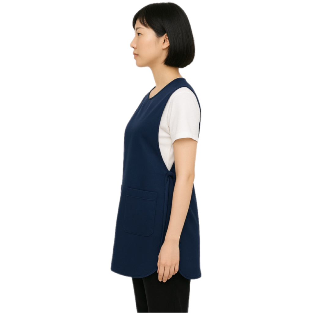 ผ้ากันเปื้อนแบบเอี๊ยม สีกรม กุ๊นกรมท่า