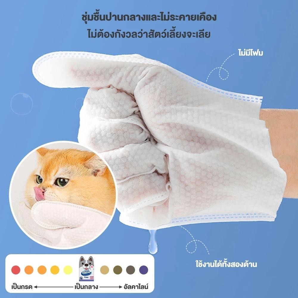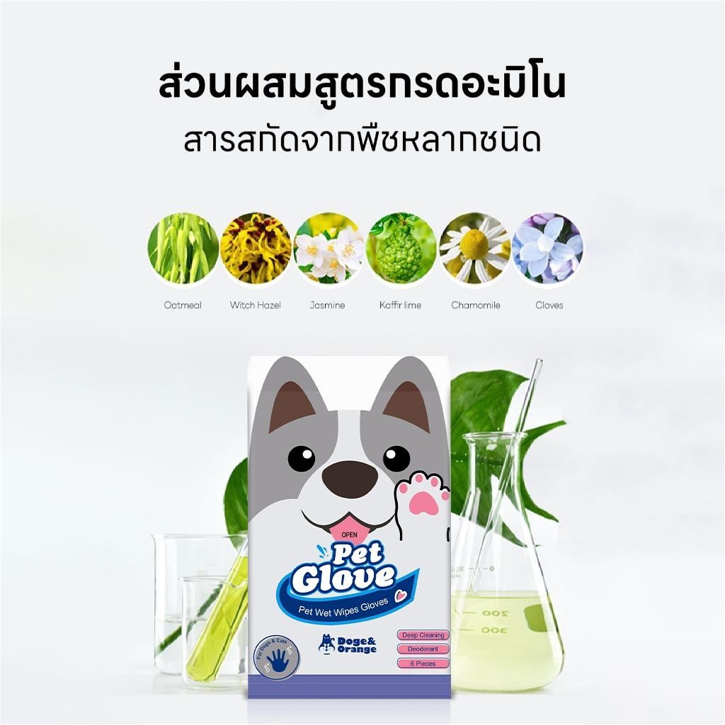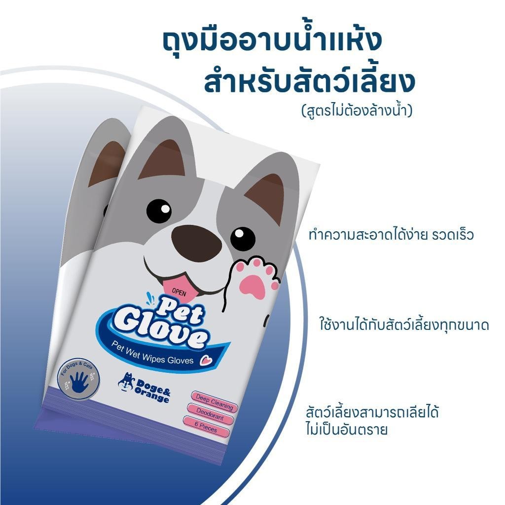 Doge&Orange ถุงมืออาบน้ำสัตว์เลี้ยง 6ชิ้น/ถุง ไม่ระคายเคืองผิว ไม่ต้องล้างน้ำ สัตว์เลี้ยงเลียได้ ปราศจากแอลกอฮอล์ MIP08