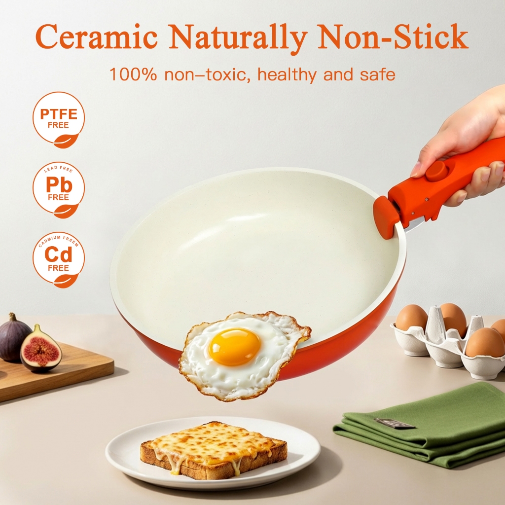 GiPP Nonstick เซรามิค Rock ชุดเครื่องครัวจับที่ถอดออกได้ 11 ชิ้นไม่มี PFAS & PTFE & PFOA Non Stick Pan เหมาะสําหรับเตาทั้งหมด