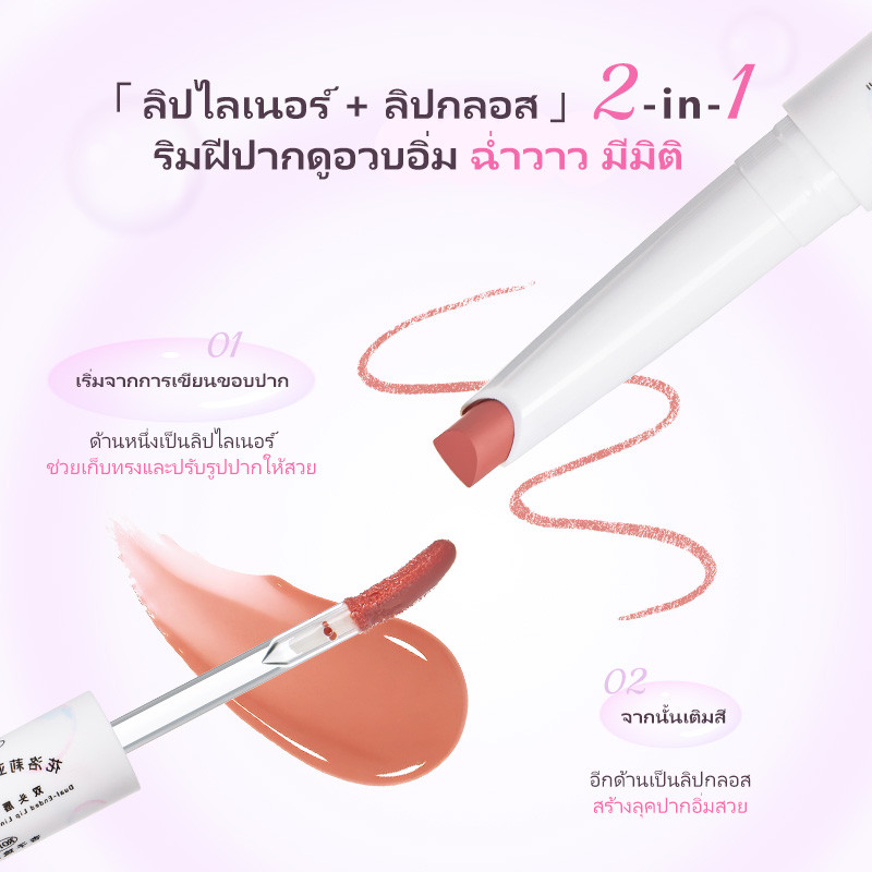 FLORTTE Rainbow Bubble Dual-Ended Lip Liner Gloss Pen
