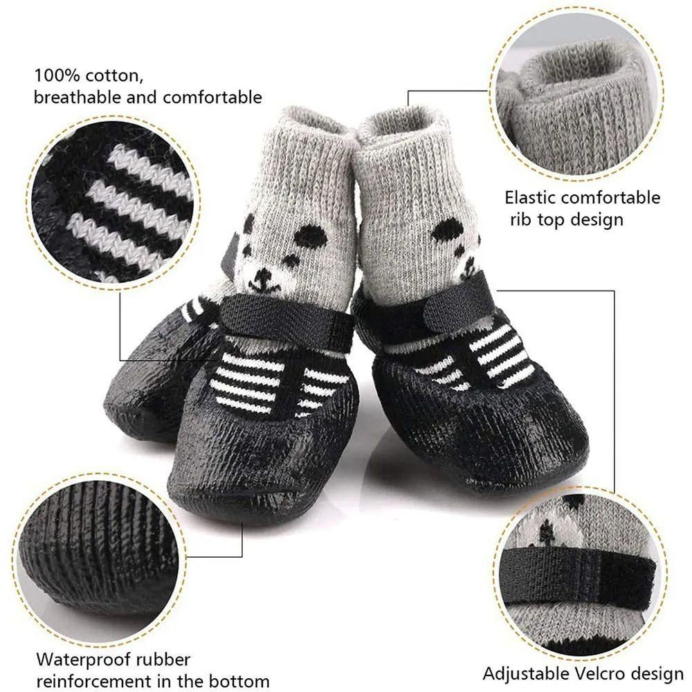 YUME แมวสุนัขถุงเท้ายาง,กันลื่นฝนรองเท้าหิมะรองเท้าสัตว์เลี้ยงรองเท้าถุงเท้า,ปรับ เชือกรูด กันน้ําอุปกรณ์สัตว์เลี้ยงลูกสุนัขขนาดเล็กถุงเท้