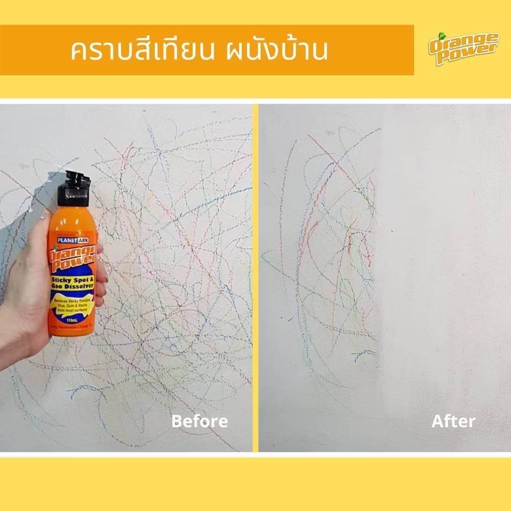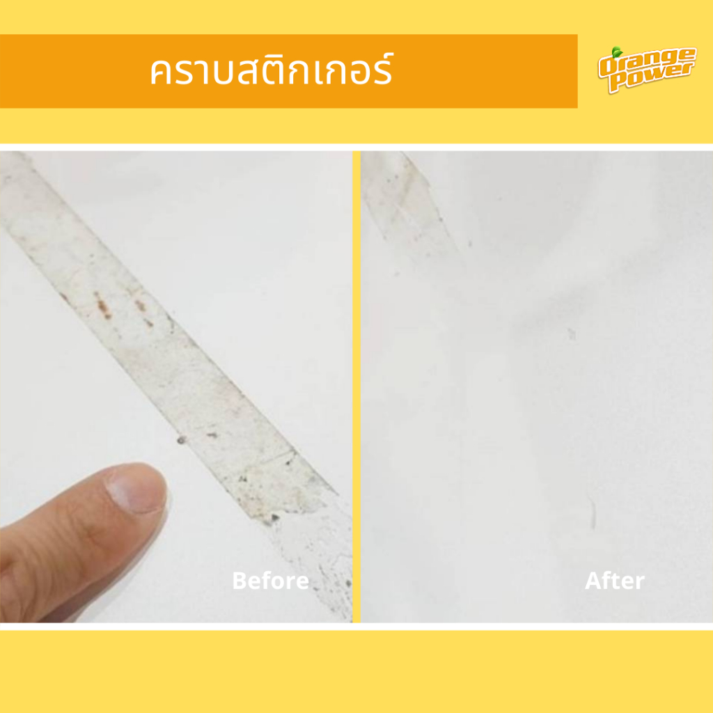 ผลิตภัณฑ์เช็ดและลบคราบเหนียวคราบกาวสติ๊กเกอร์ น้ำยาเช็ดและลบคราบกาวคราบสติ๊กเกอร์ Orange Power Sticky Spot