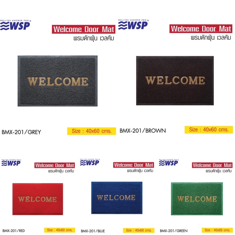 WSP พรมดักฝุ่น Welcome พรมเช็ดเท้า พรมกันลื่น พรมปูพื้น มี 2 ขนาด (มีหลายสีให้เลือก)