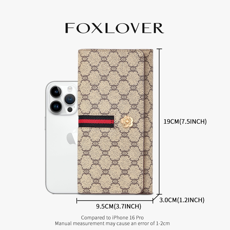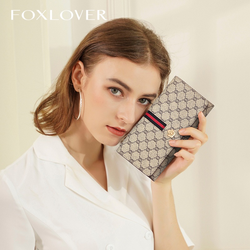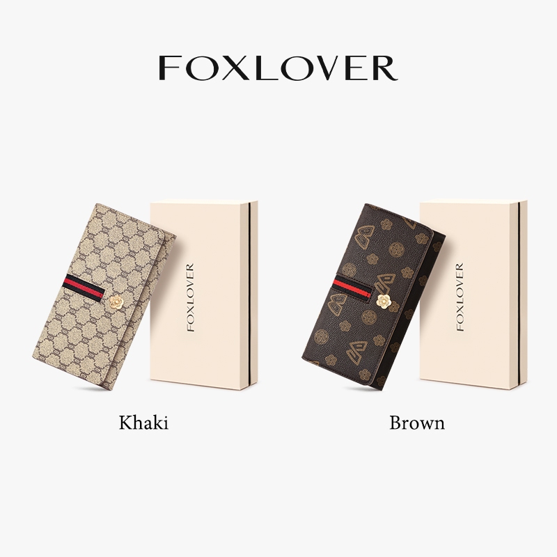 FOXLOVER กระเป๋าเงินยาวผู้หญิง สไตล์ลักซูรี ยุโรป-อเมริกา สีน้ำตาลกาแฟ สไตล์น้อยคนใช้รีสอร์ท