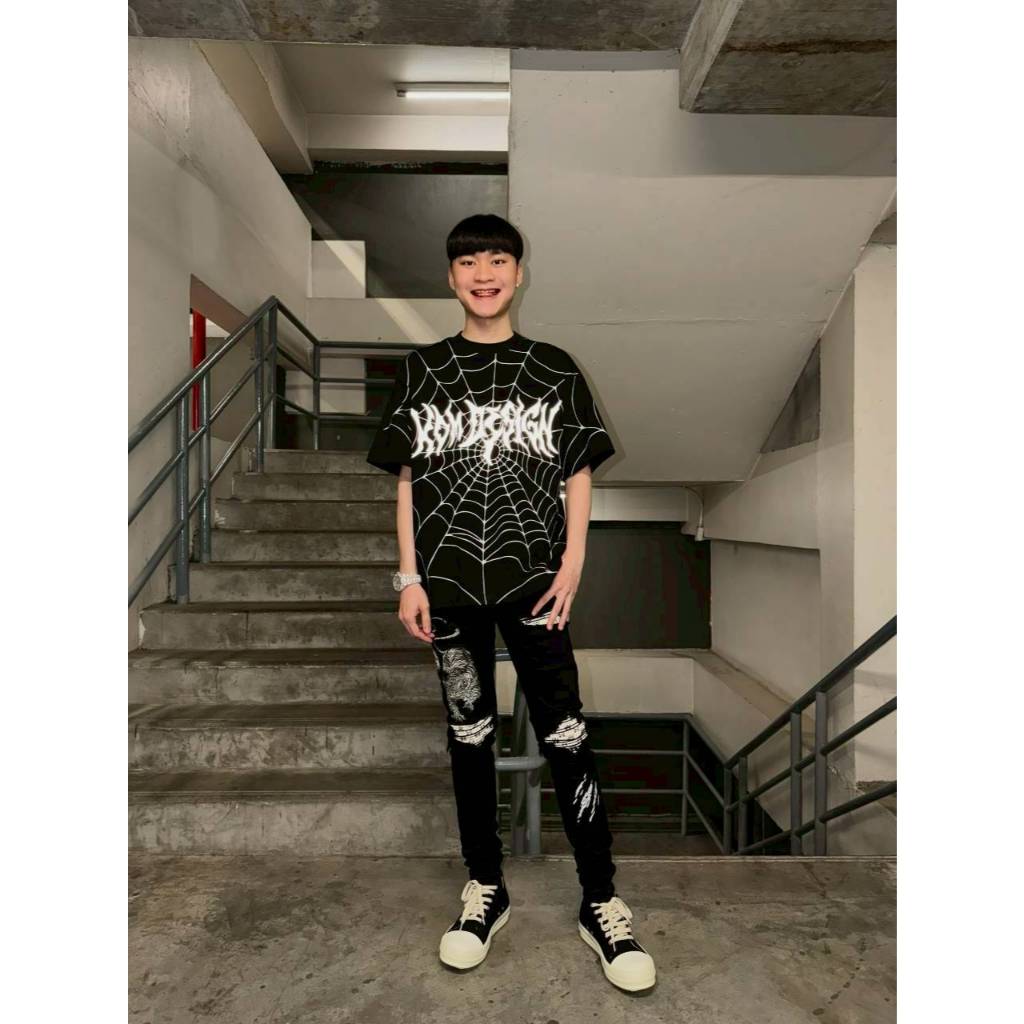 312XOM เสื้อยืดสกรีนลายแมงมุมสะท้อนแสง เสื้อยืดแขนสั้น เสื้อคอกลม
