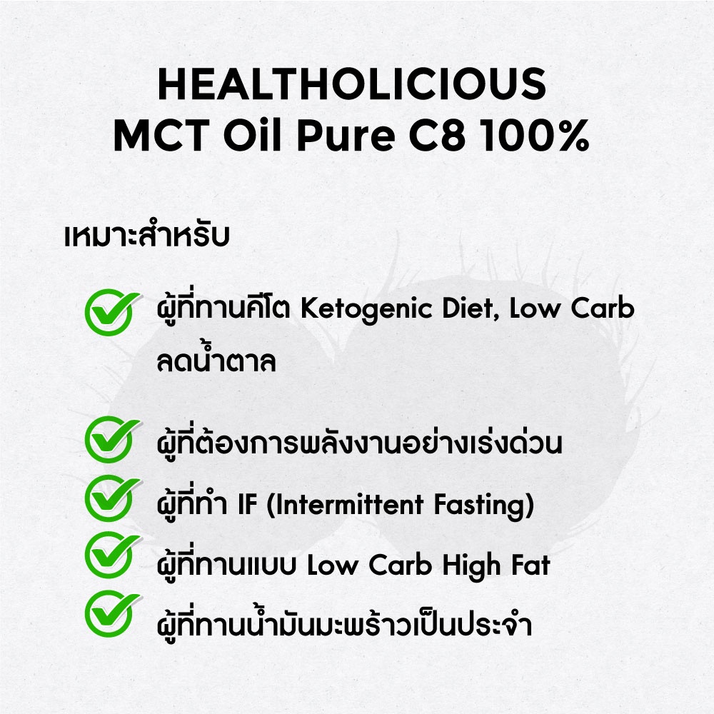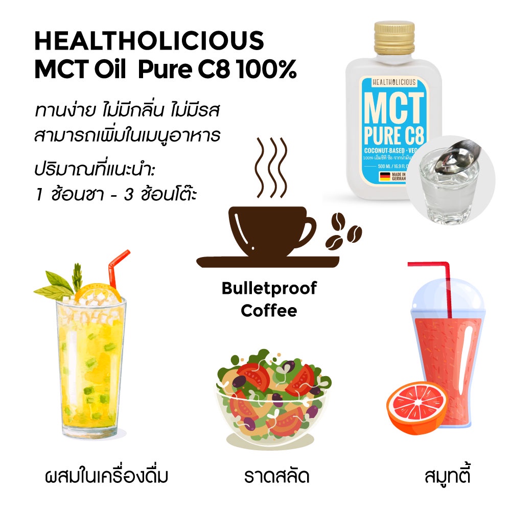 พร้อมส่ง! MCT OIL C8 PURE เอ็มซีที ออยล์ ซี8 น้ำมันมะพร้าว KETO FAT : COCONUT by HEALTHOLIC 500ml