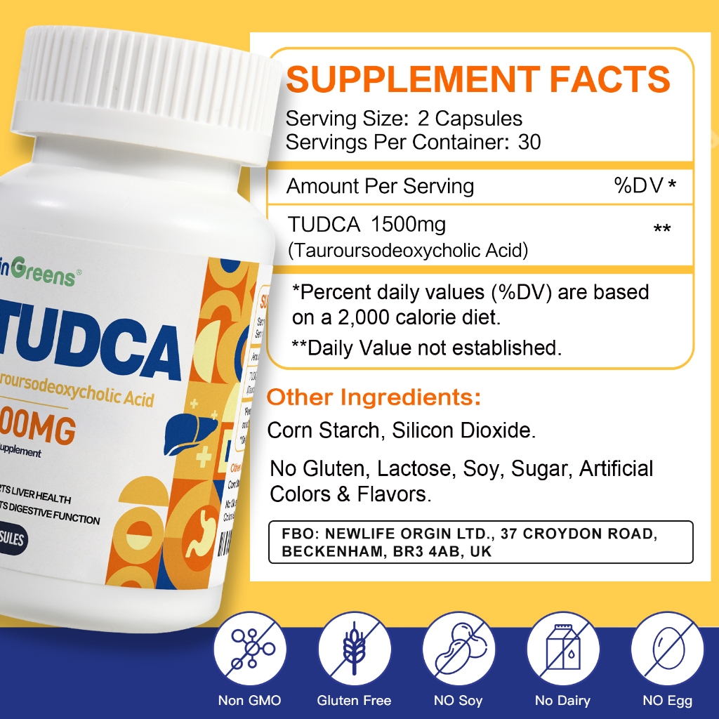 InGreens 1500mg TUDCA Bile Salts, สูตรเกลือน้ําดีความบริสุทธิ์สูงสําหรับตับและรองรับทางเดินอาหาร, นกนางแอ่นง่าย