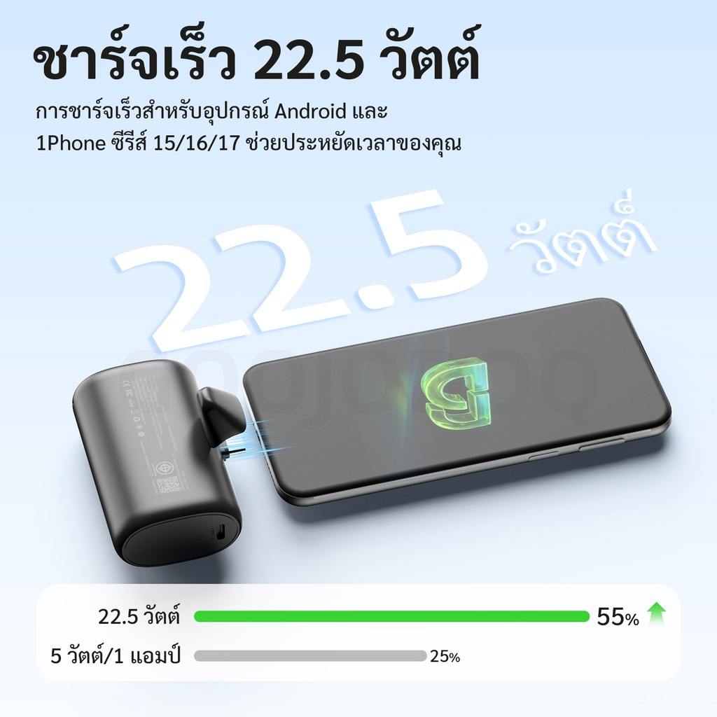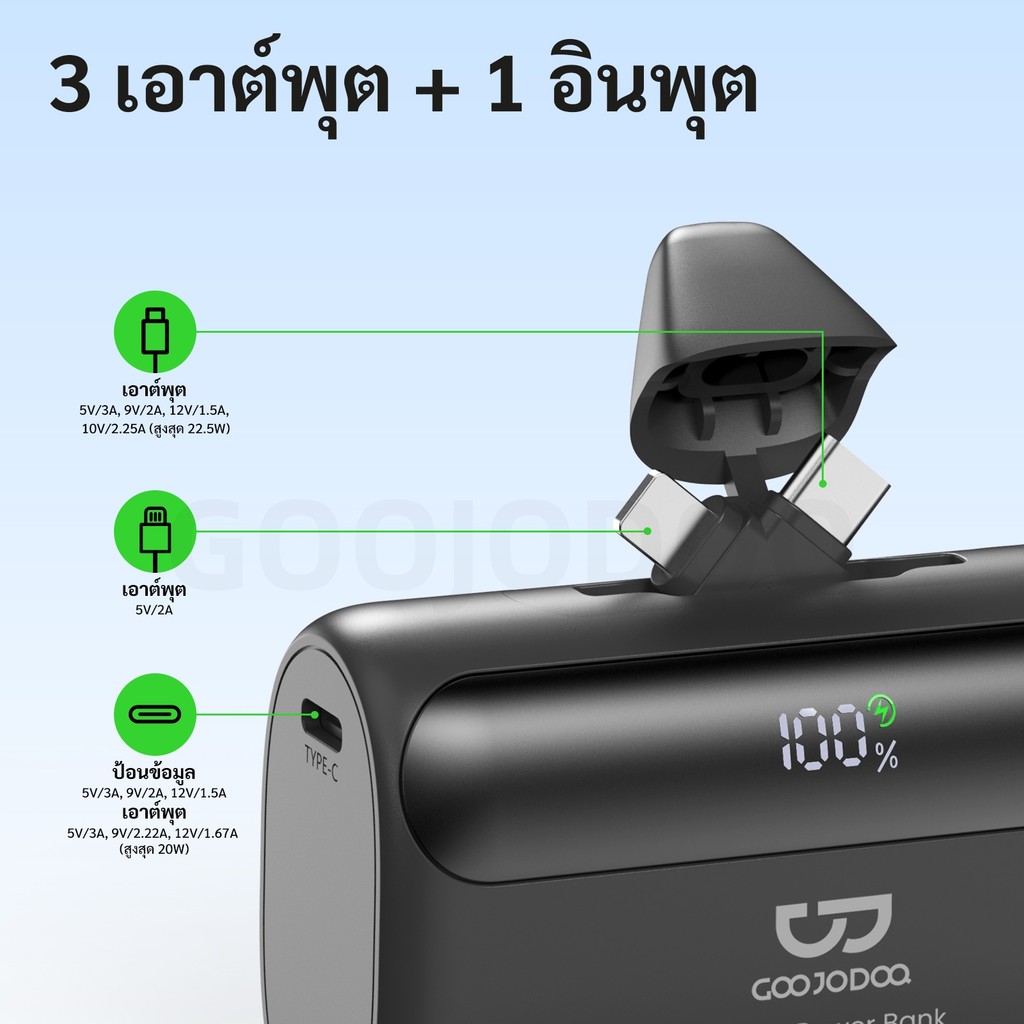 GOOJODOQ 10000mAh Power Bank 22.5W ชาร์จเร็วเป็นพิเศษอินเทอร์เฟซ Lightning และ USB-C ในตัวที่แม่นยําหน้าจอแสดงผล LED
