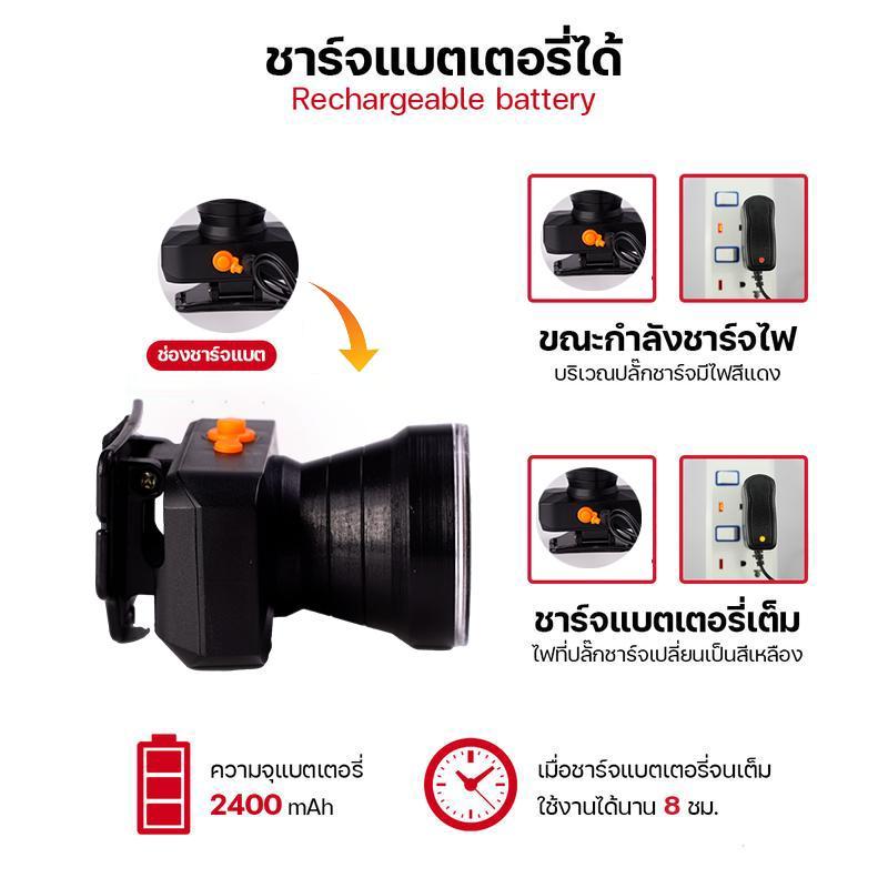 BLT-01 ไฟฉายคาดหัว IPX8 150 M กันน้ำได้ดี ให้ความสว่างสูง ไฟหน้าแบบ LED แบบชาร์จไฟได้ พกพาสะดวก ใส่เดินป่า แถมที่ชาร์จ