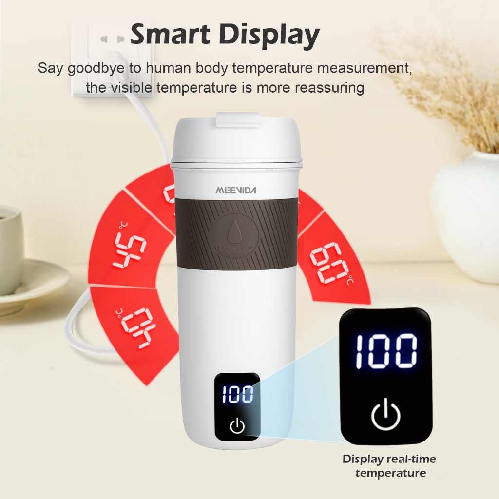 Meevida ถ้วยน้ําร้อนไฟฟ้าแบบพกพา ยูเอสบี ชาร์จกาต้มน้ําเดินทางไฟฟ้าถ้วยดน้ําขนาดเล็กจอแสดงผลนําถ้วย