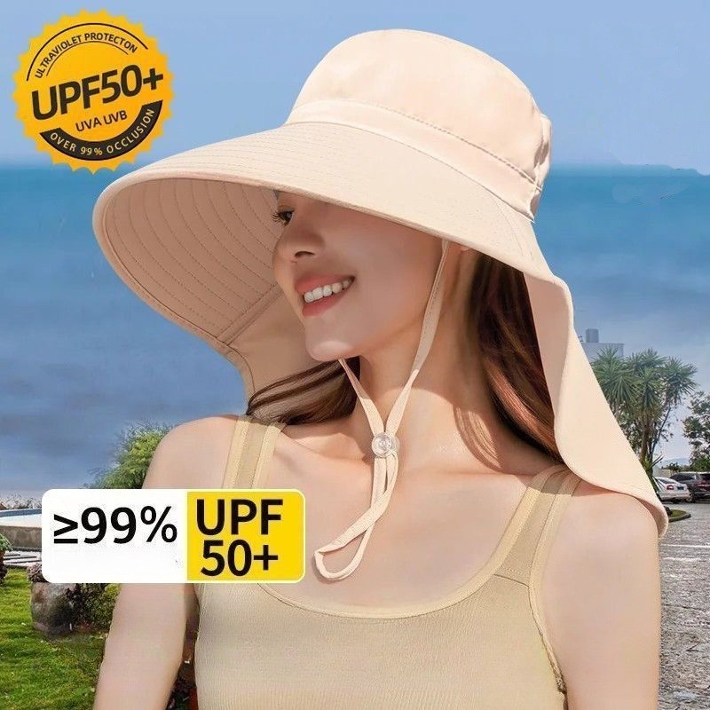 หมวกกันแดดคลุมหน้าแบบผ้าคลุมใหญ่ หมวกบักเก็ตกันลม สำหรับปั่นจักรยาน สไตล์เรียบง่าย ผู้หญิง ป้องกันรังสียูวี