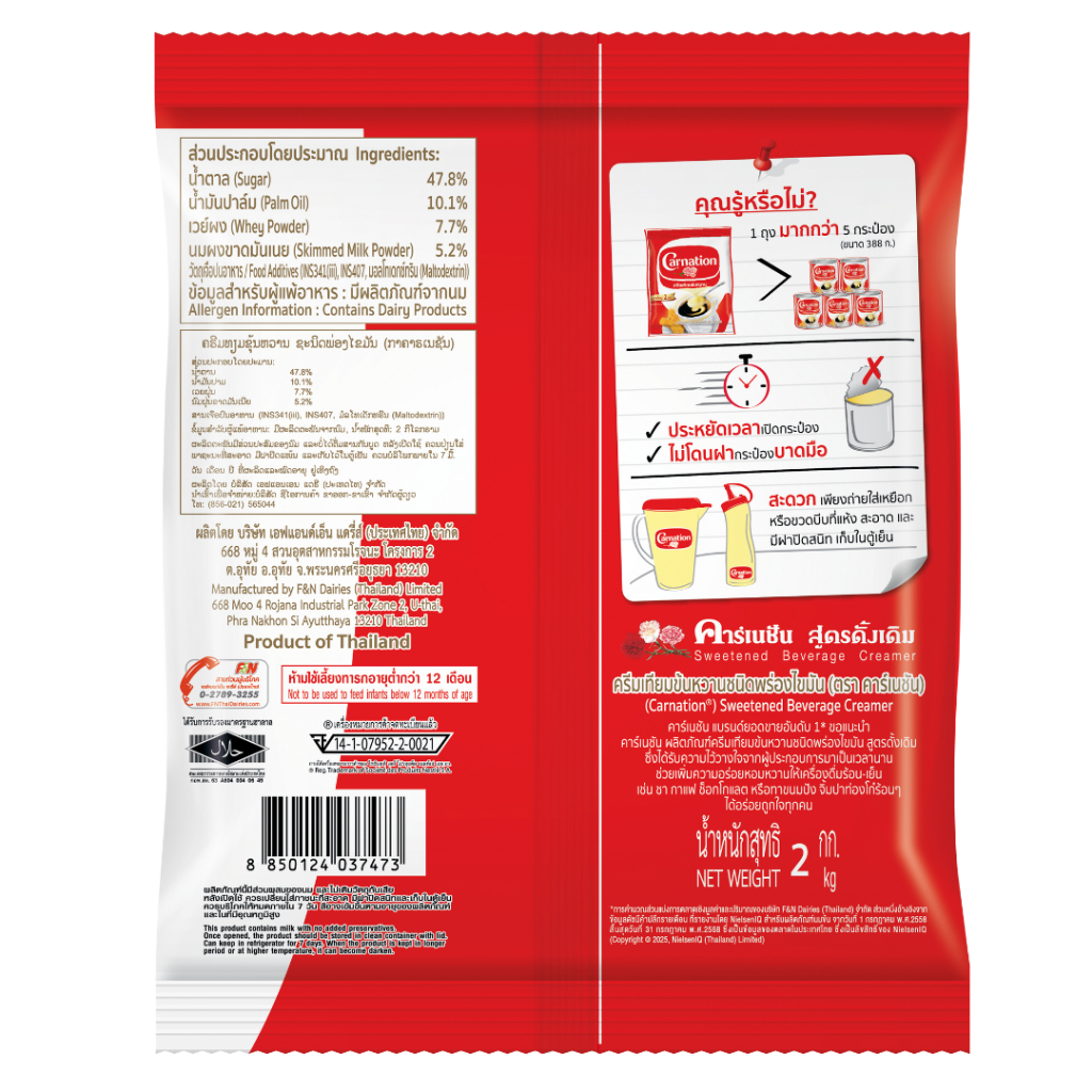 [ส่ง กทม. ปริมณฑล จังหวัดหลักอื่นๆ] คาร์เนชัน ครีมเทียมข้นหวาน 2 กิโลกรัม (1X8) จำนวน 2 ลัง รวม 16 ถุง