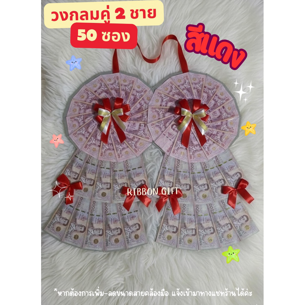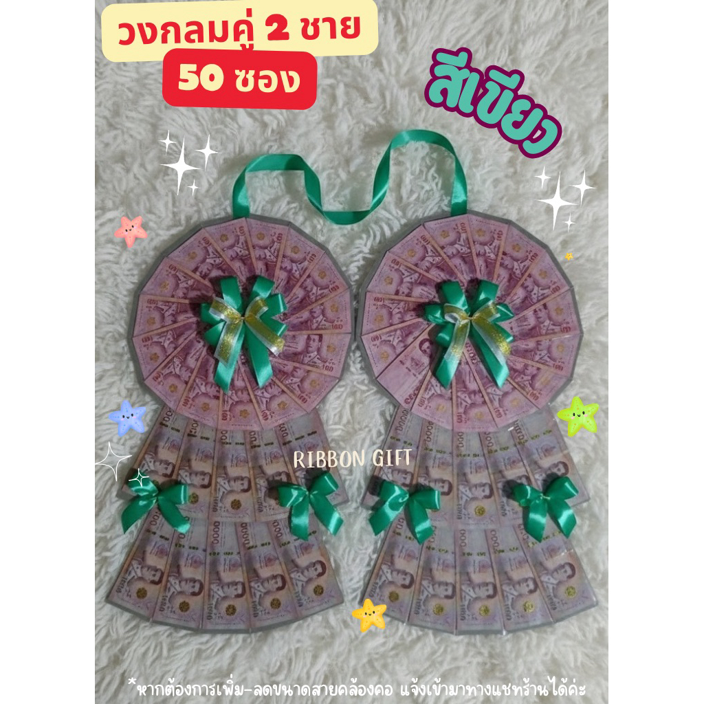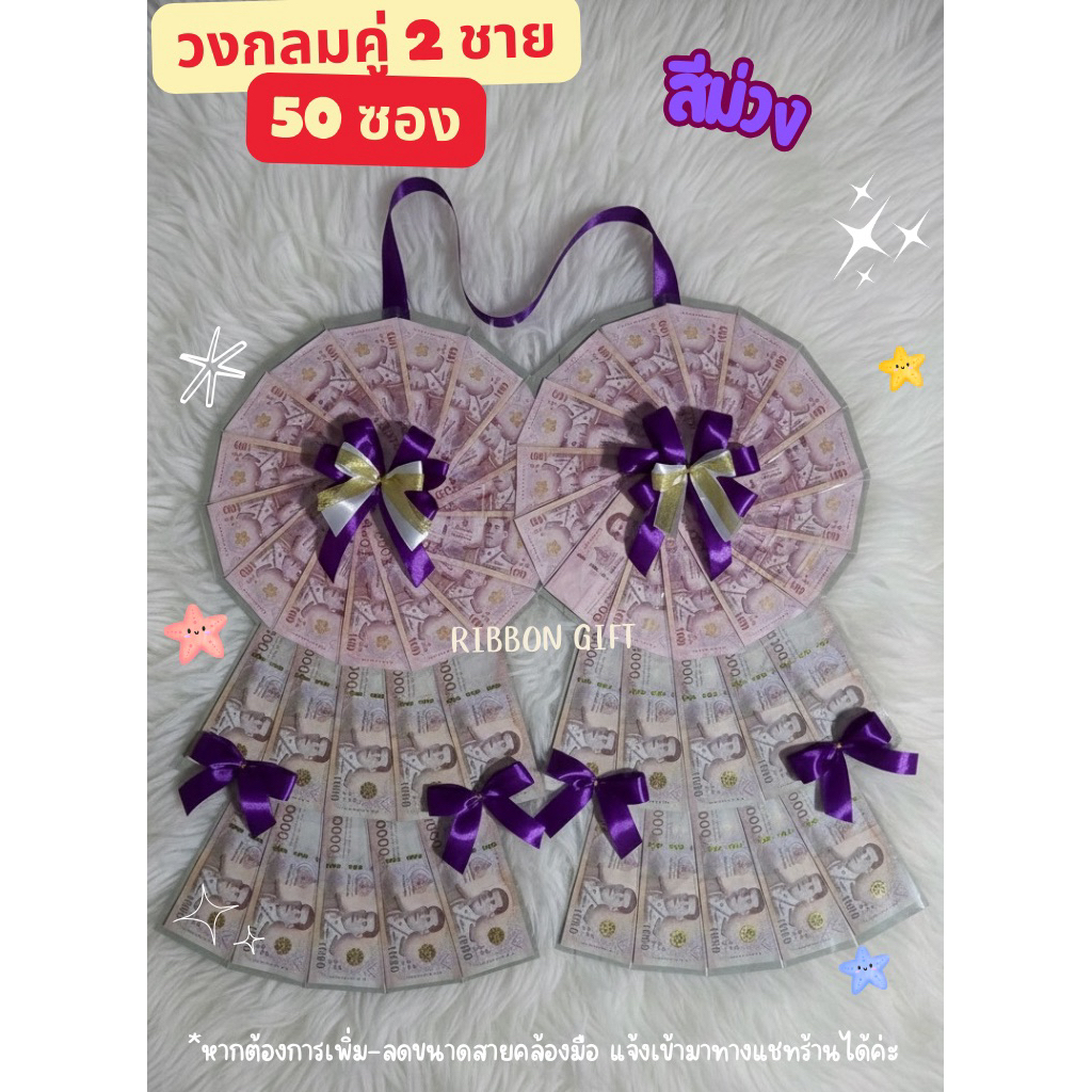 พวงมาลัยใส่เงิน วงกลมคู่ 2 ชั้น 50 ซอง ใส่ได้ทุกแบงค์