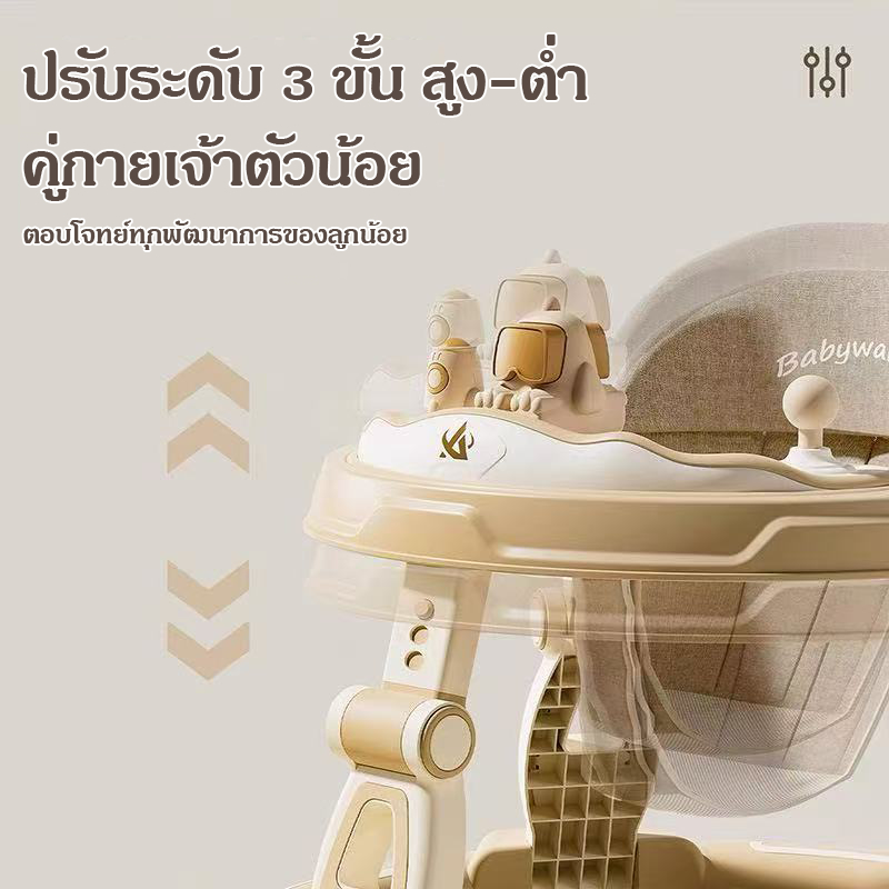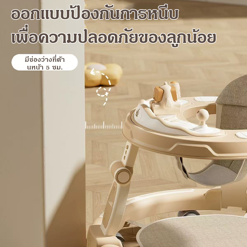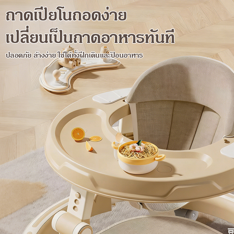 NEW【มีเพลง มีไฟ】พับเก็บ รถหัดเดินเด็ก 2in1ปรับเป็นผลักเดินได้ รถเด็กหัดเดิน มีถาดของเล่น ปรับระดับได้3ระดับรถหัดเดินเด็ก