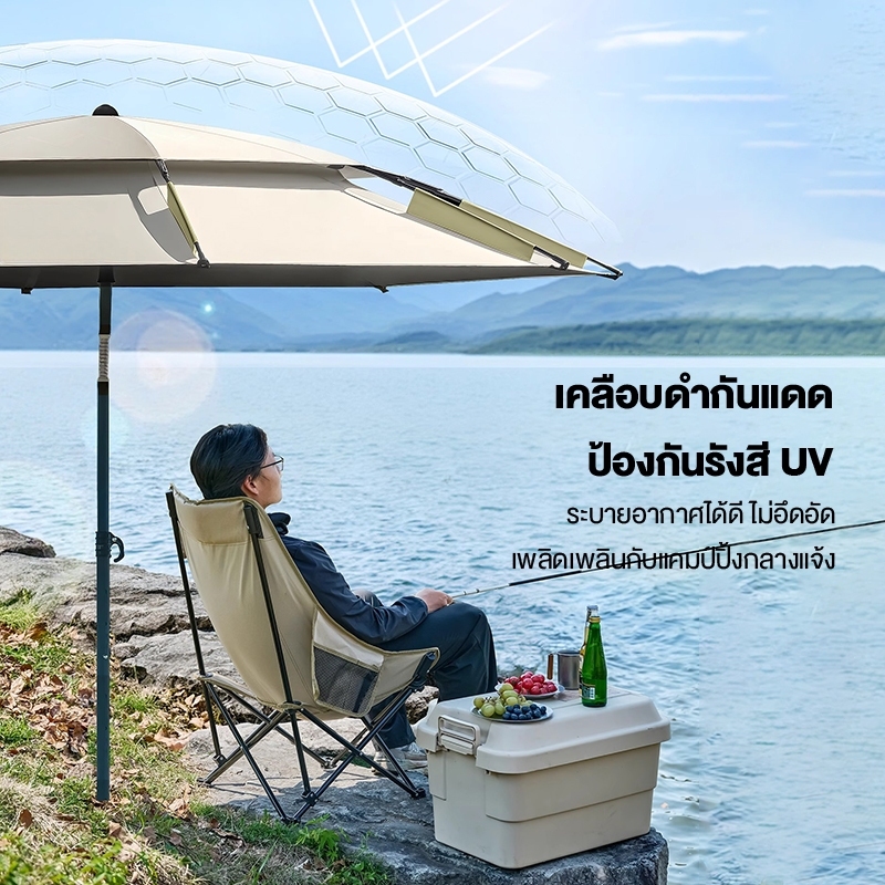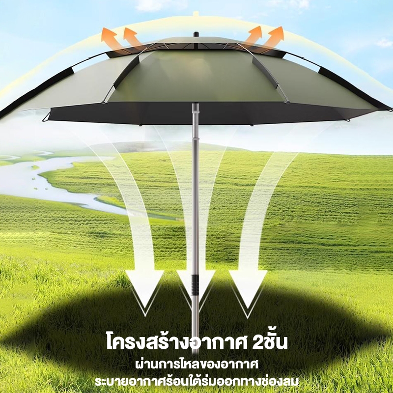 ร่มตกปลา 2.6เม ร่มตกปลาชิงหลิว ยางสีดำหนาสองชั้น ขนาดใหญ่ อลูมิเนียม+PPC กันแสง UV กันแดดกันฝน