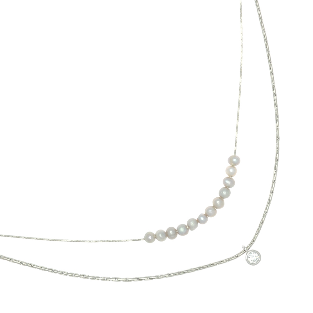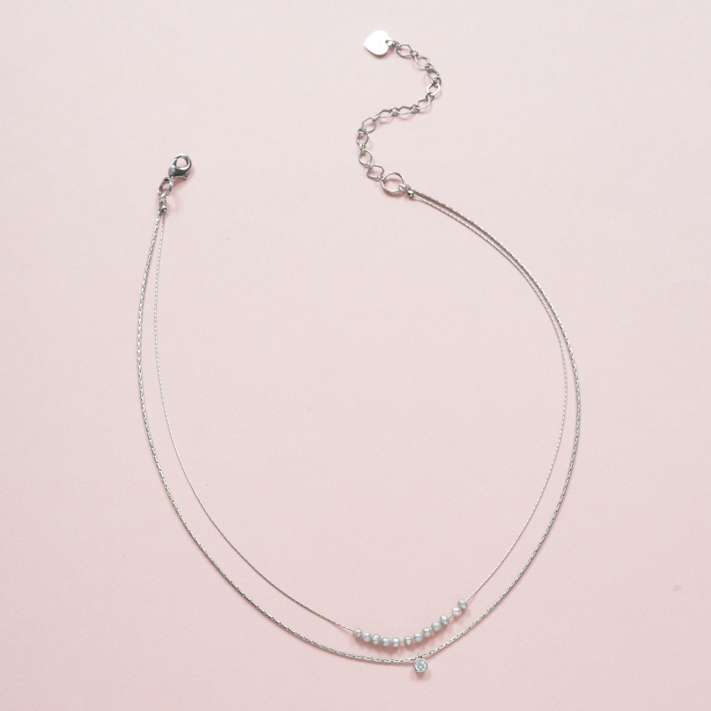 Pearl Silver - POWER STONE DOUBLE-LAYERED NECKLACE สร้อยคอหินมงคลสองชั้น-หินไข่มุกสีเงิน
