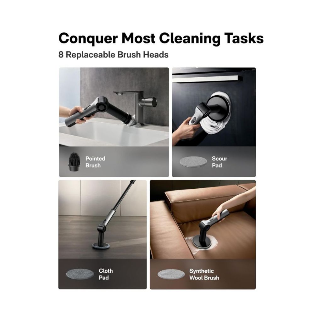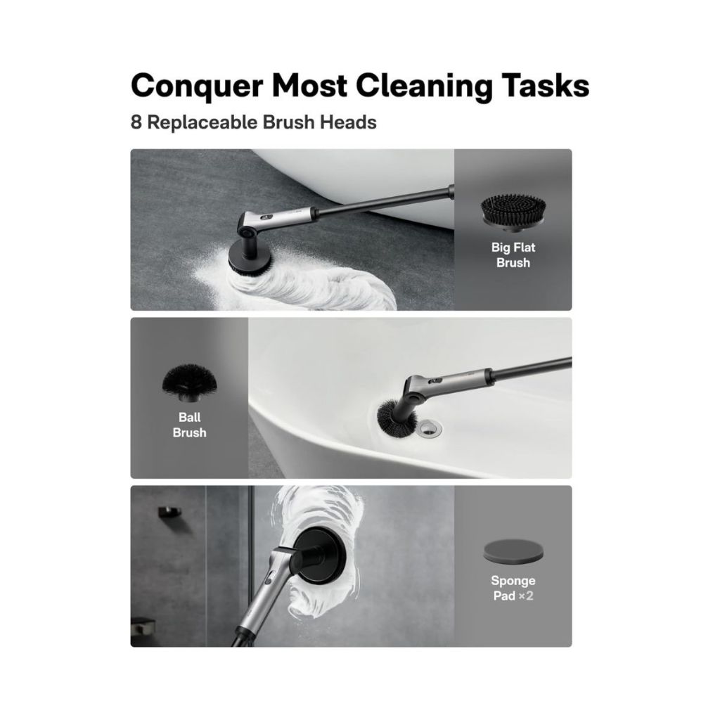 HOTO Flexi Cordless Spin Scrubber แปรงขัดไฟฟ้าไร้สาย ปรับองศาได้ พร้อมหัวแปรง 8 แบบ