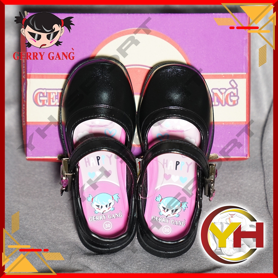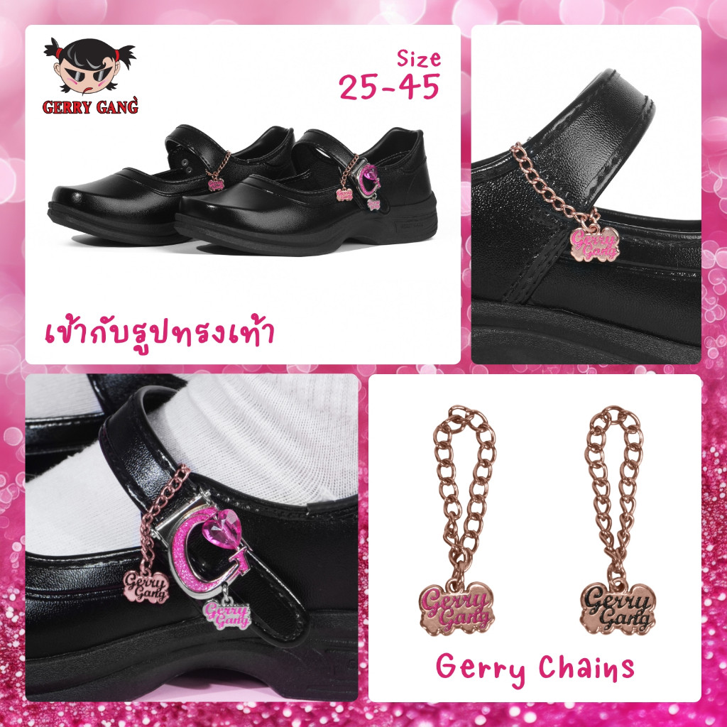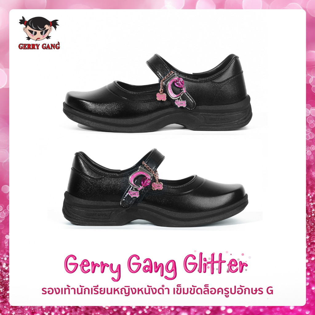 Gerry gang รองเท้านักเรียน หนังดำ รุ่นกลิตเตอร์ รุ่นโบว์ 2026 แบบล็อค แถมChain พร้อมส่ง ของแท้ 100%