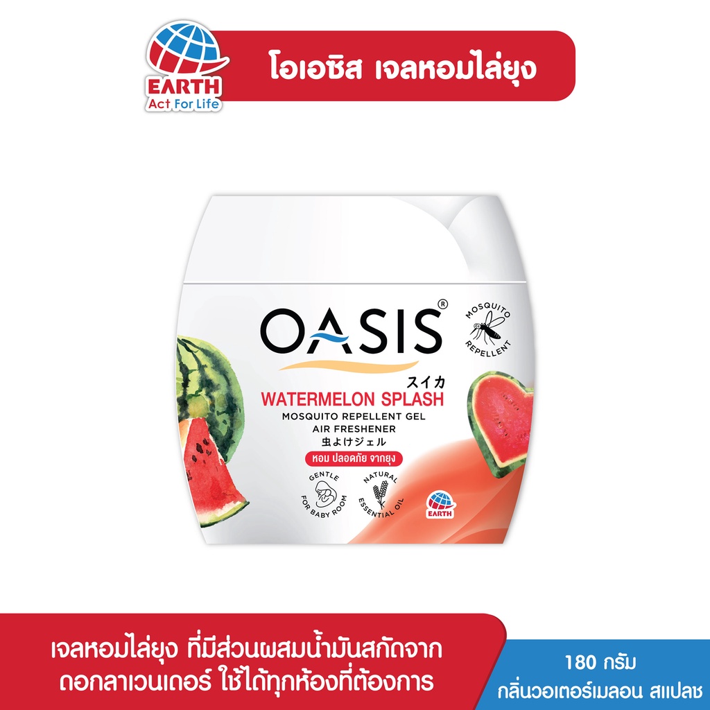 โอเอซิส เจลหอมปรับอากาศ สูตรไล่ยุง กลิ่นวอเตอร์เมลอนสแปลช 180 กรัม OASIS MOSQUITO REPELLENT GEL WATERMELON SPLASH 180g