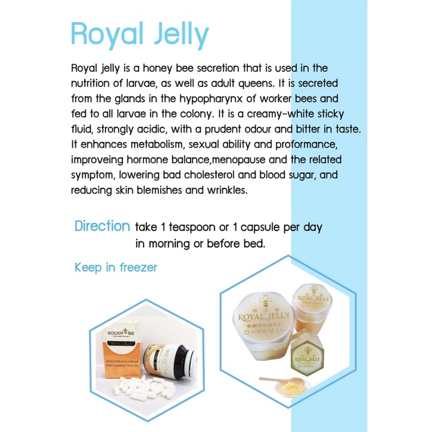 Golden Bee นมผึ้ง (Royal Jelly 100 Capsules - 250mg./Capsule) - นมผึ้งแคปซูล 100 เม็ด