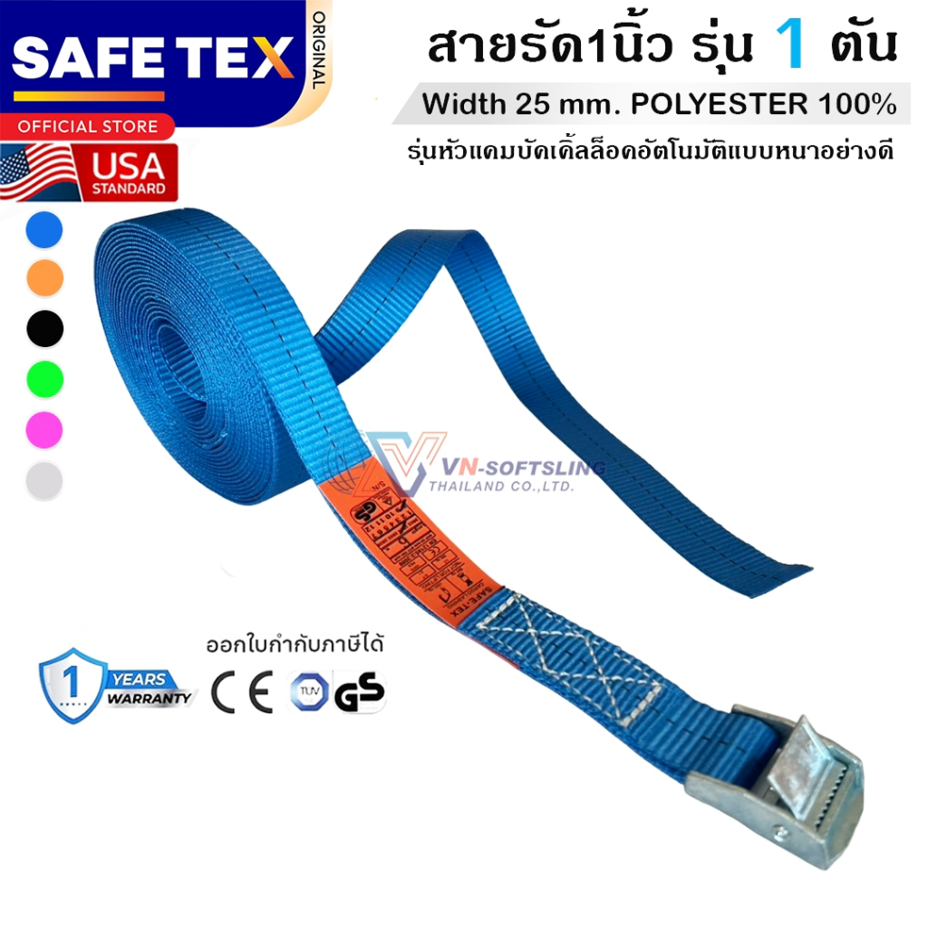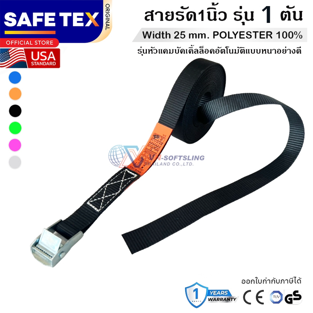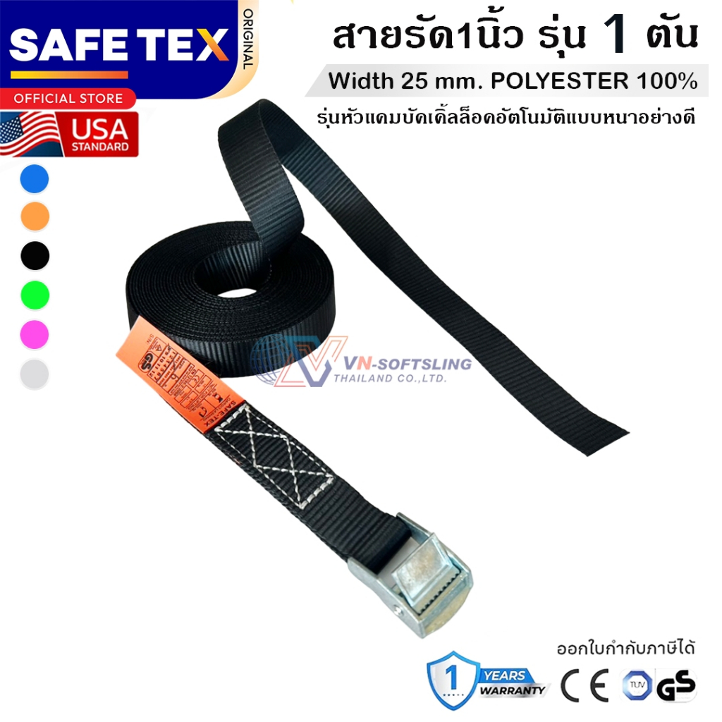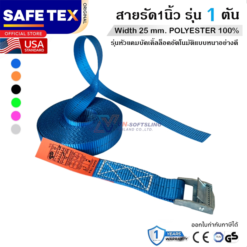 SAFETEX USA สายรัดวันเวย์ 1 นิ้ว 1 ตัน (หัวล็อกอัตโนมัติ) สายรัดของ สายรัดมอไซด์ สายรัดอเนกประสงค์