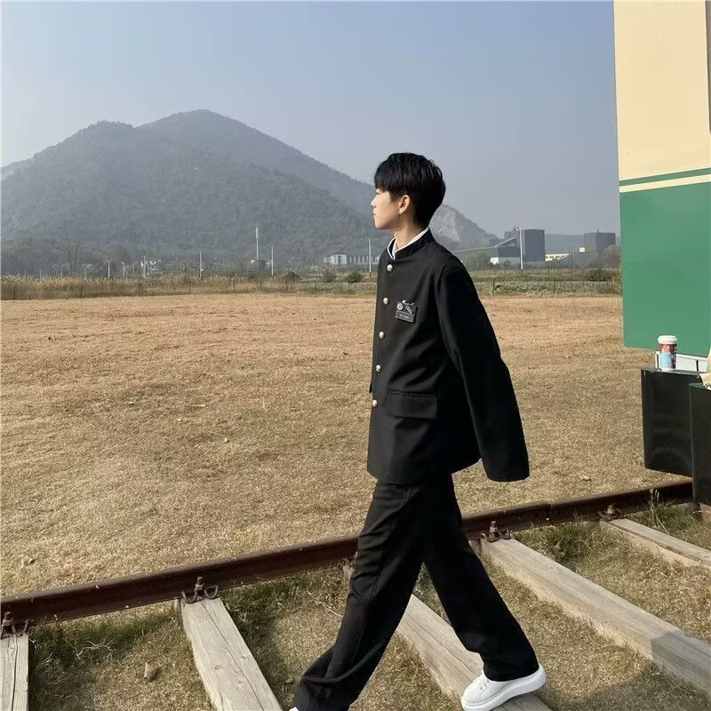 TLHGQ ชุดนักเรียนสไตล์ญี่ปุ่น สีดำคลาสสิกพร้อมปุ่มสีทอง สำหรับคู่รัก